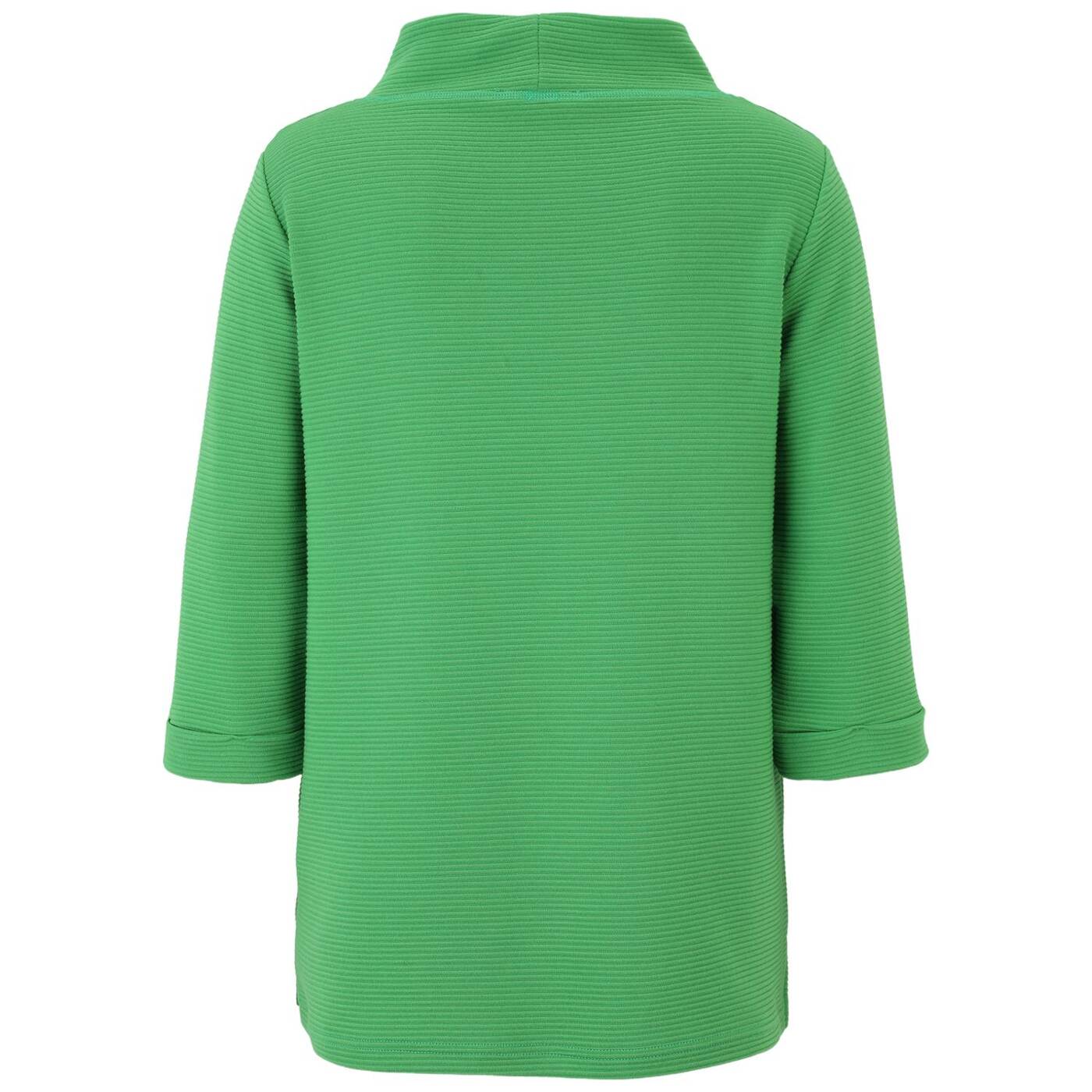 sweatie sanft an den körper und umspielt wunderbar die silhouette. die ärmelaufschläge des 3/4-arms sind fixiert.
