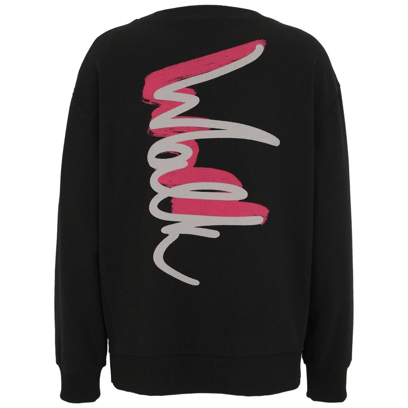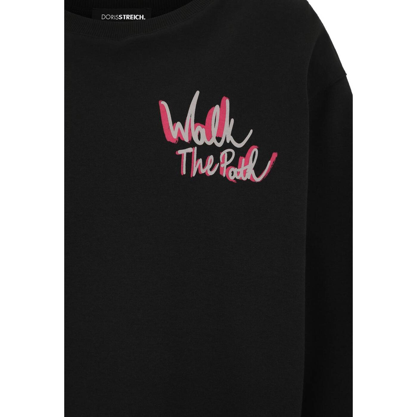 Das lässige kürzere sweatshirt von doris streich kommt mit einem angesagten kleinen motiv im vorderteil und einem großen motiv auf dem rücken. es ist aus elastischer sweatware gefertigt. abgerundet wird dieser style durch strickbündchen und eine
