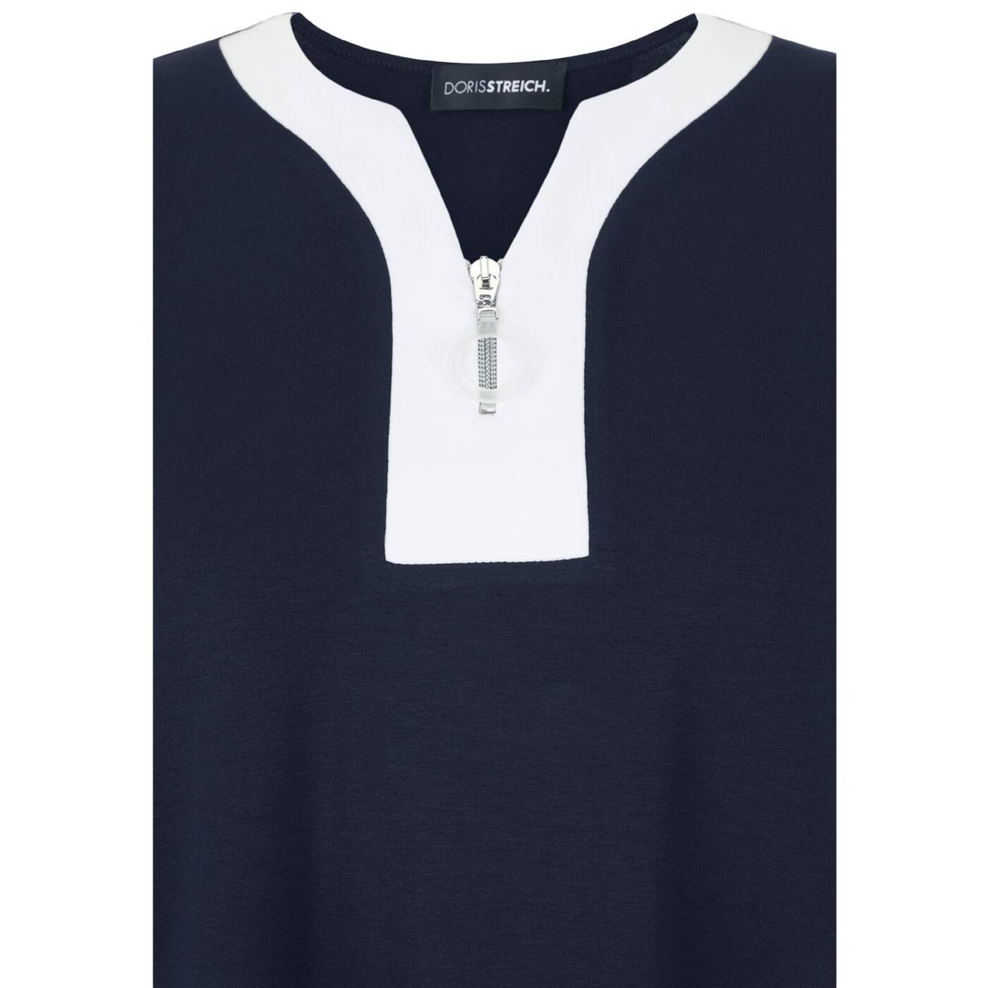 materialmischung fällt leger. der dekorative weiße einsatz rund um den halsausschnitt, der reißverschluss mit dekorativem anhänger und die einsätze am ärmelabschluss macht diesen style zum neuen lieblingsteil ihrer garderobe.