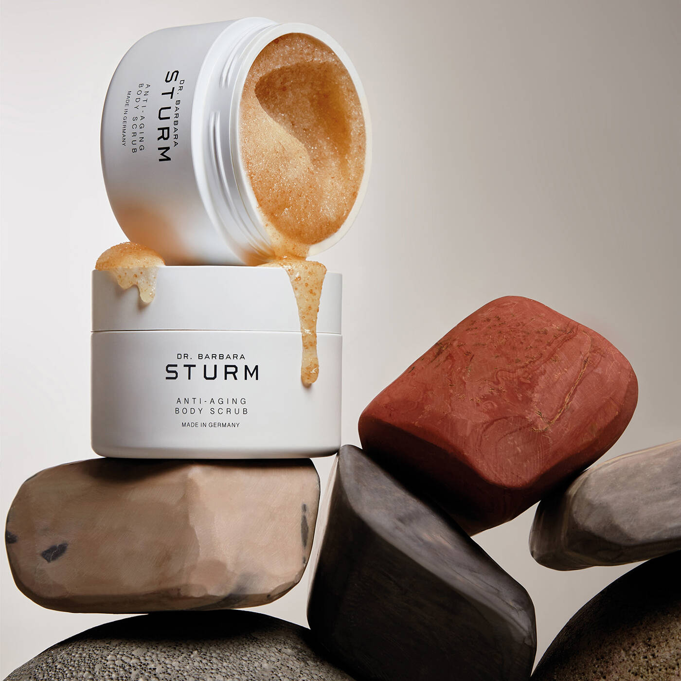 Die Epidermis des Körpers ist dicker als die Gesichtshaut und enthält weniger Talgdrüsen und Haarfollikel. Dadurch ist sie anfällig für Trockenheit und Elastizitätsverlust, was zu fahler, faltiger, dünner und schlaff werdender Haut führen kann. Dr. Barbara Sturms neues ANTI-AGING BODY SCRUB ist die neueste Innovation ihrer Anti-Aging Körperpflegekollektion und bietet, in Kombination angewendet, einen 360° Ansatz für gesunde, makellose und jugendlich aussehende Haut von Kopf bis Fuß.