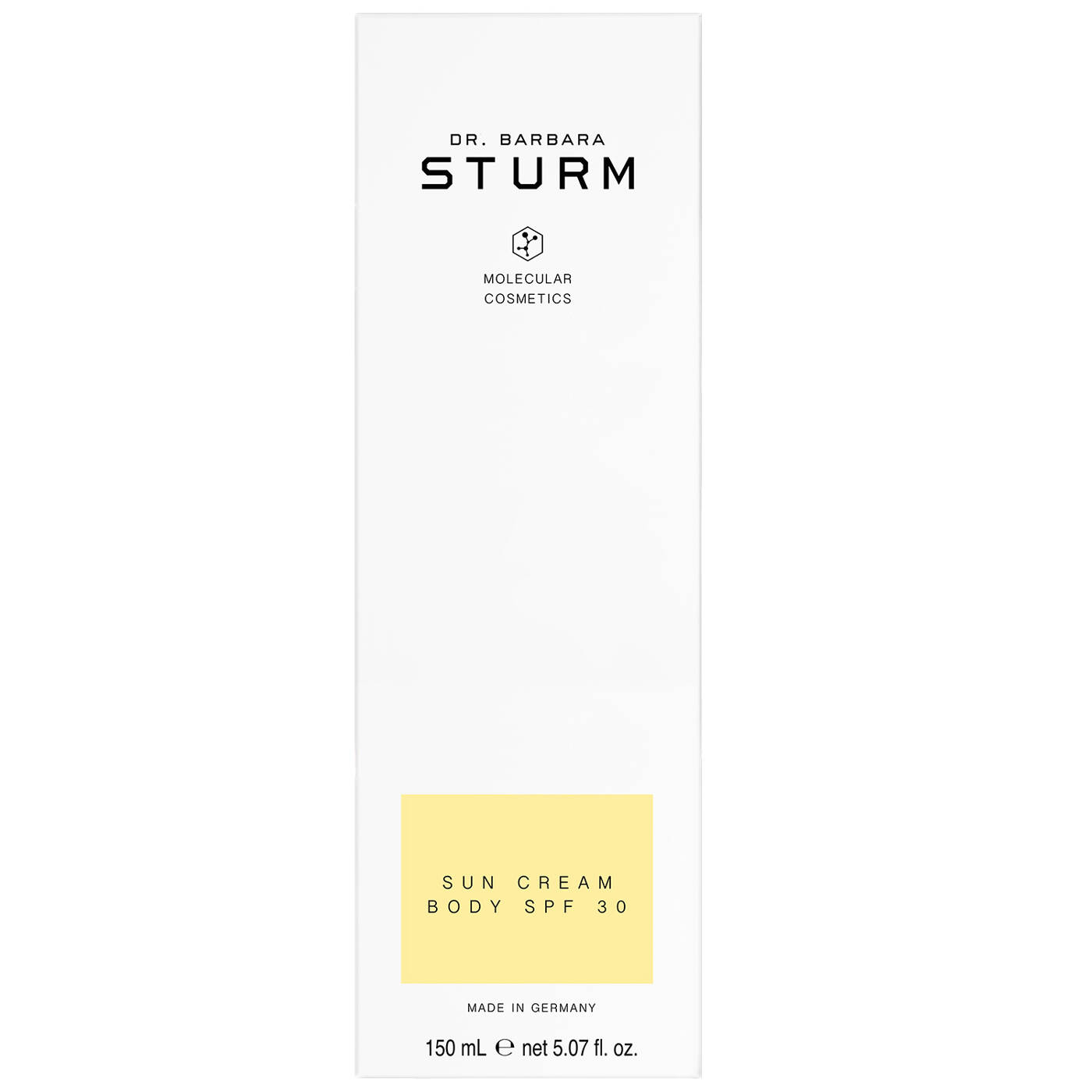 Als Antwort auf das eigens entwickelte Sonnenserum fürs Gesicht (SUN DROPS SPF 50 bzw. SPF 30) stellt Dr. Barbara Sturm nun eine innovative neue Sonnenschutzpflege mit Full-Light-Technologie für den restlichen Körper vor. Unsere SUN CREAM BODY SPF 30 bietet nicht nur umfassenden Schutz vor UVA/B-Licht, sondern stärkt auch den Eigenschutz der Haut vor HEV-Licht und Infrarot. Das Ergebnis: straffere, glattere und jugendlicher aussehende Haut von Kopf bis Fuß.
