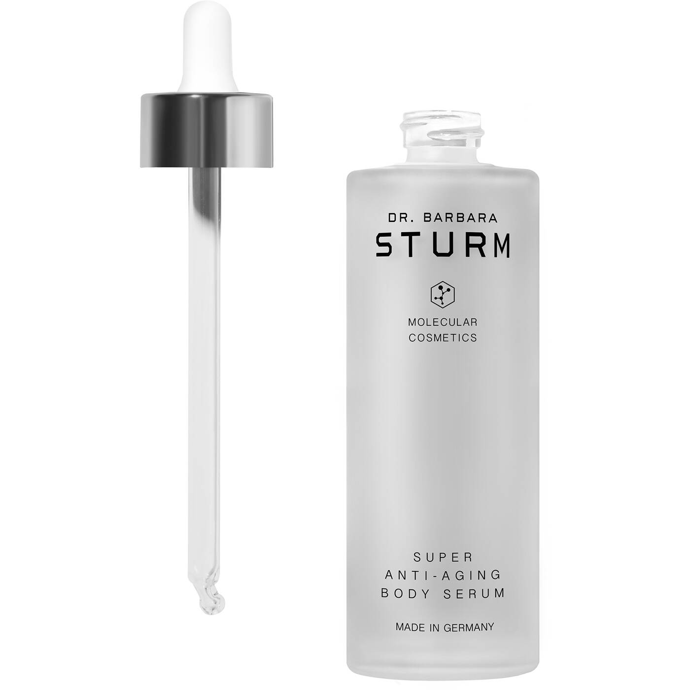 Am Körper können außerdem Dehnungsstreifen auftreten, insbesondere nach Gewichtsschwankungen und während der Schwangerschaft. Um auf die spezifischen Hautpflegebedürfnisse des Körpers einzugehen und gezielte Pflege zu bieten, hat Dr. Barbara Sturm das SUPER ANTI-AGING BODY SERUM entwickelt, eine konzentrierte, molekularwissenschaftliche Serum-Innovation, die von Dr. Sturms beliebtem Gesichtsserum, dem SUPER ANTI-AGING SERUM, inspiriert wurde und für gesunde, jugendlich aussehende Haut von Kopf bis Fuß sorgt.