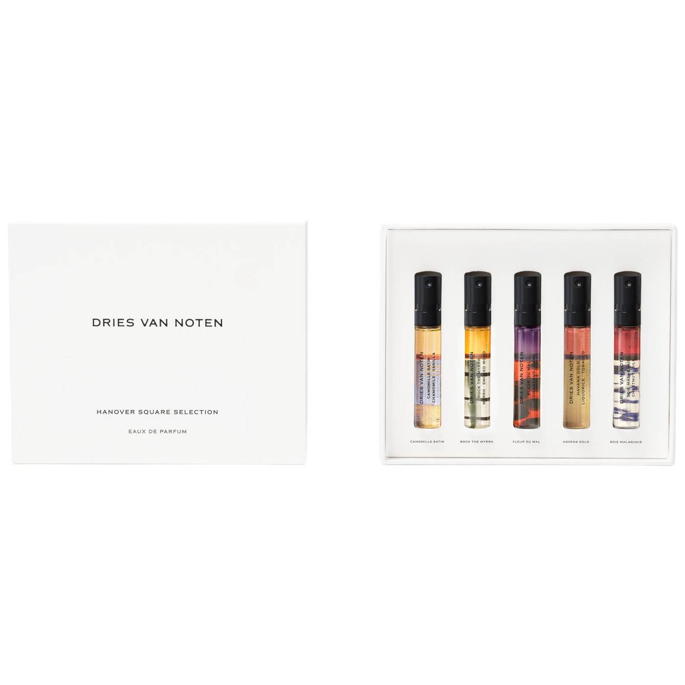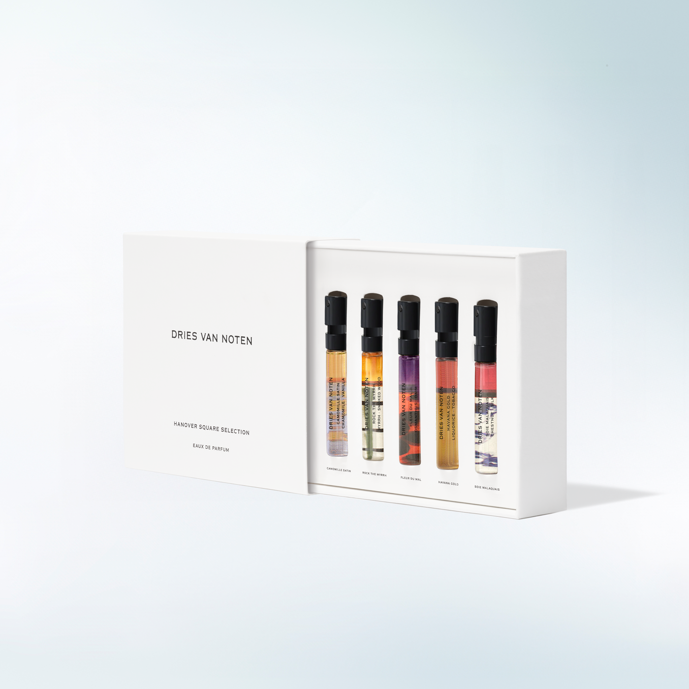 Das Hanover Square Discoery Set vereint fünf Düfte aus der Dries Van Noten Eaux de Parfum Kollektion in einem edlen Coffret. Fünf opulente Signaturen, verbunden durch die Idee „unmöglicher Kombinationen“: intensiv, süchtig machend und kunstvoll kontrastiert. Präsentiert in 2ml Phiolen, wird jeder Duft auf einem Print inszeniert, der das Design des Originalflakons widerspiegelt. Benannt nach der Dries Van Noten Boutique in London, verkörpert Hanover Square die Kreativität und Raffinesse des Hauses.