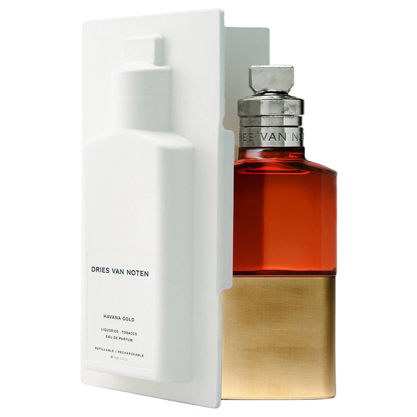 "Havana Gold. Eine innovative Ode an Handwerkskunst. Die Magie des Metalls – roh, unvollkommen und von unwiderstehlicher Ausstrahlung. In diesem faszinierenden Duft prallen zwei olfaktorische Welten aufeinander: süße, wohltuende Lakritzenoten verschmelzen mit den tiefen, rauchigen Tabakschwaden, die in der Luft schweben.