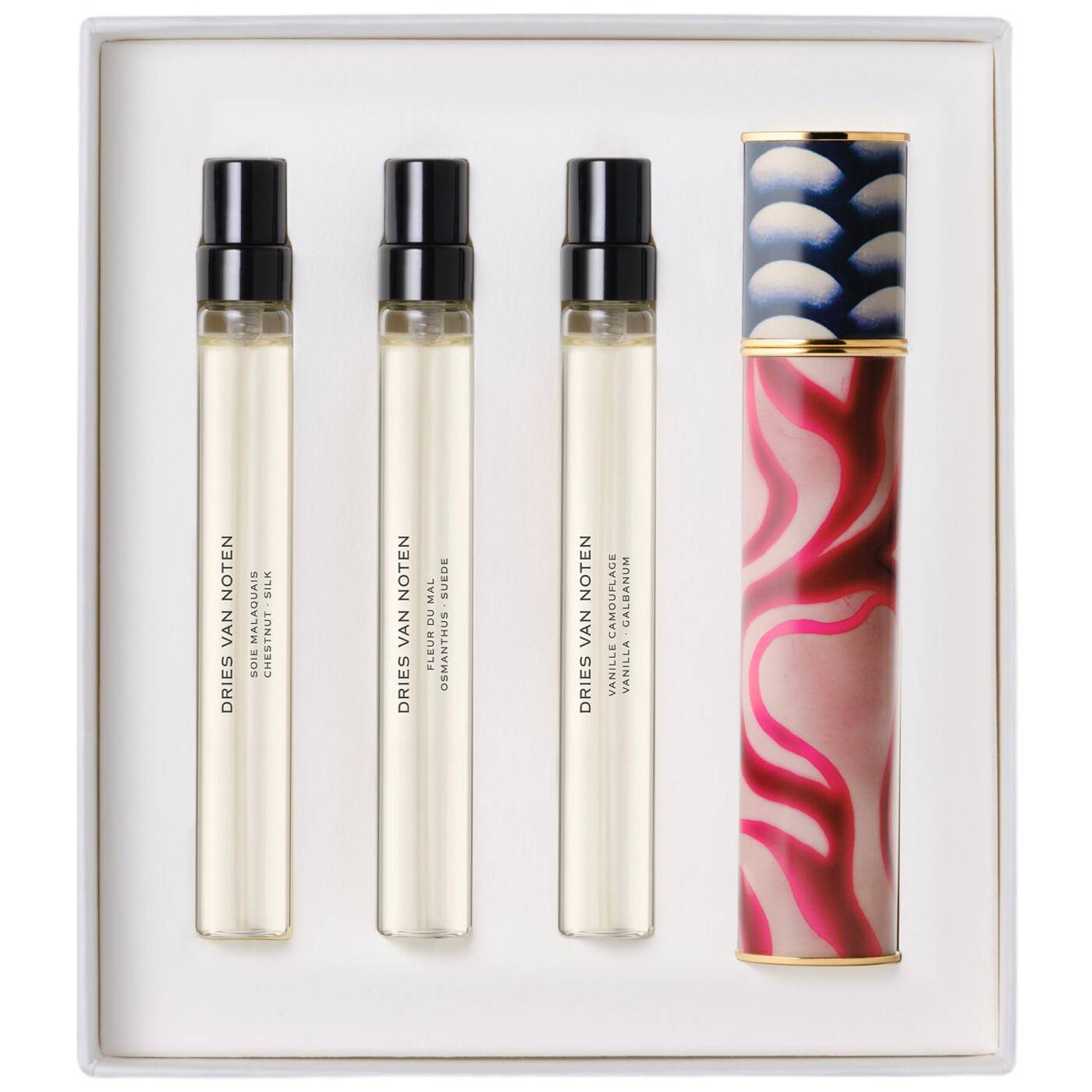 "Für Sie selber oder auch als Geschenk. Drei florale Duftikonen und ein edles Etui: Soie Malaquais, Fleur du Mal, Vanille Camouflage. Jedes Eau de Parfum kommt in Form eines nachfüllbaren 10ml Sprays.