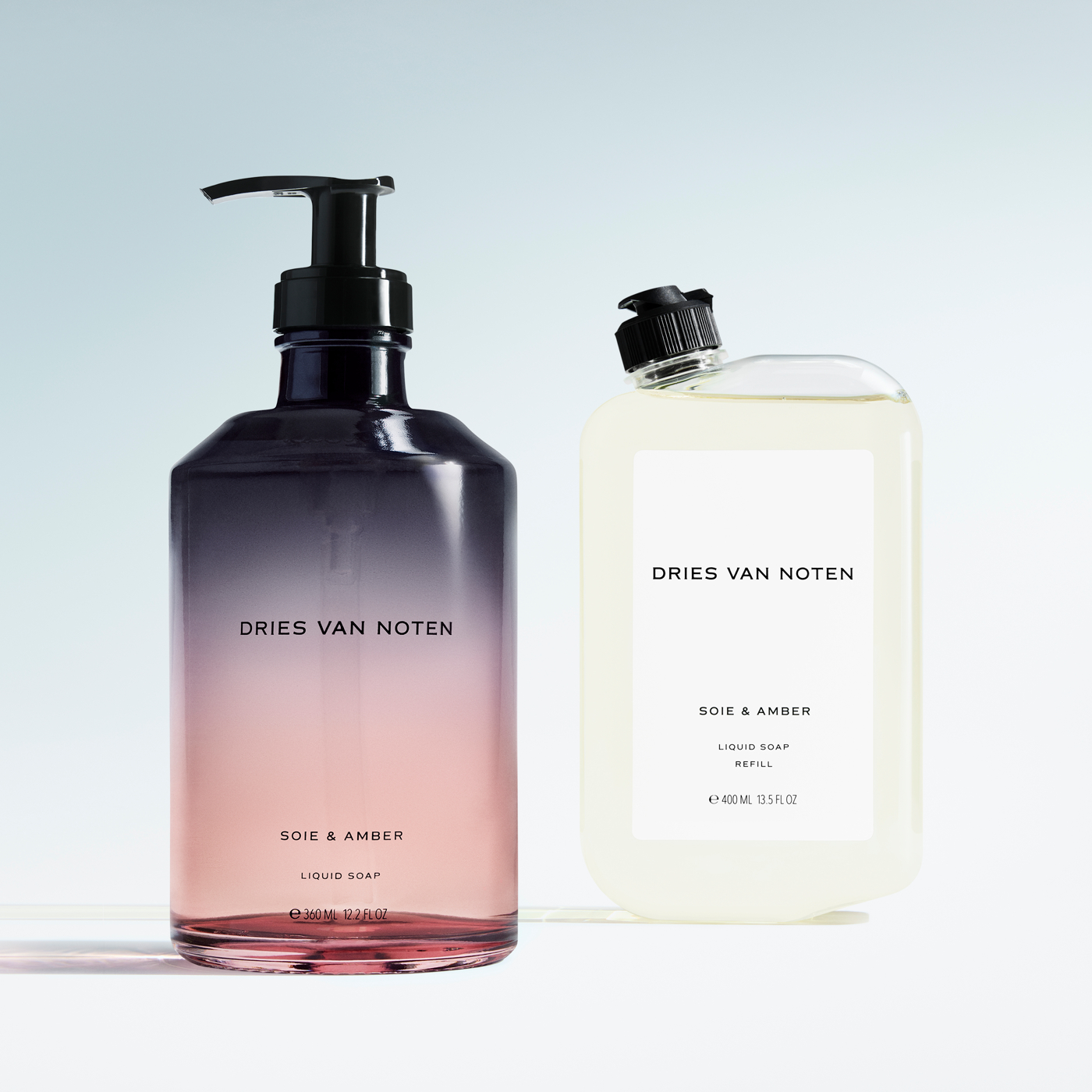 Als Teil der Hand‑ & Body‑Kollektion bringt die Flüssigseife die unverwechselbare Handschrift von Dries Van Noten in die alltäglichen Pflegerituale.