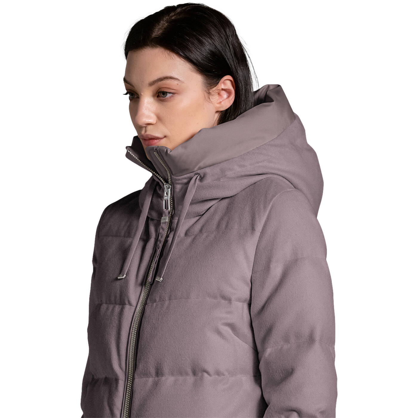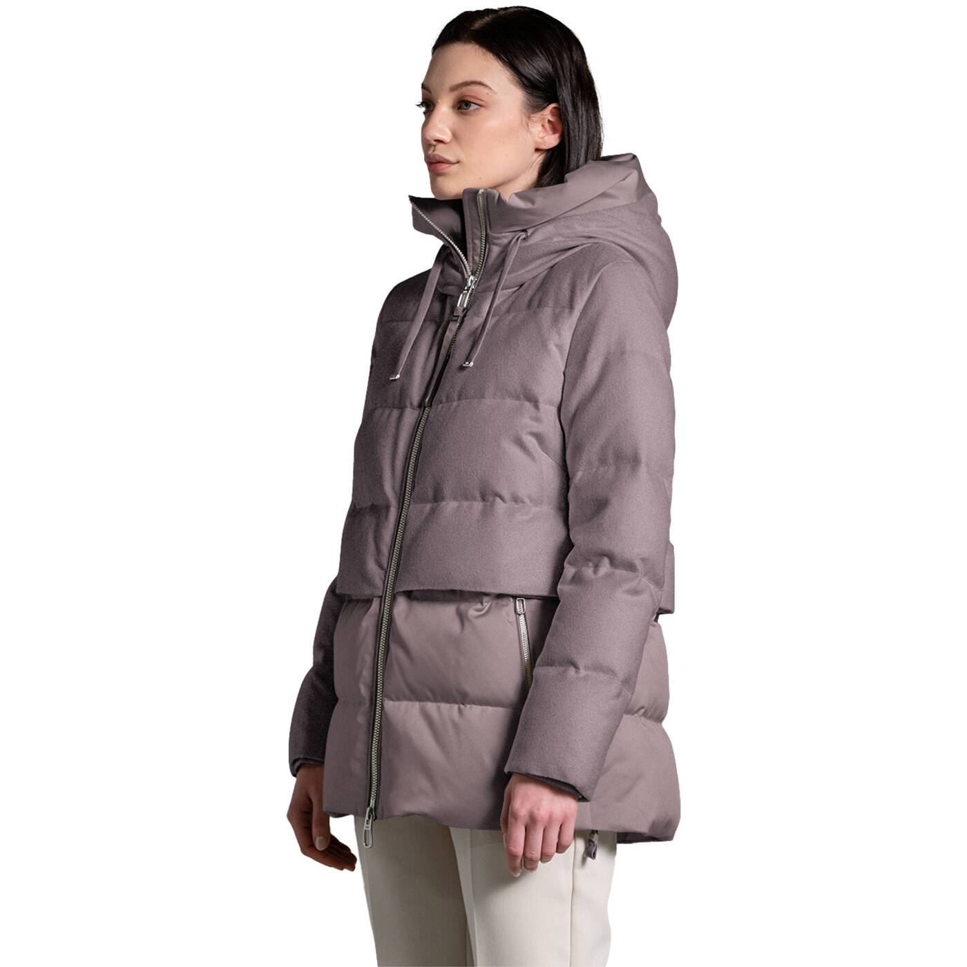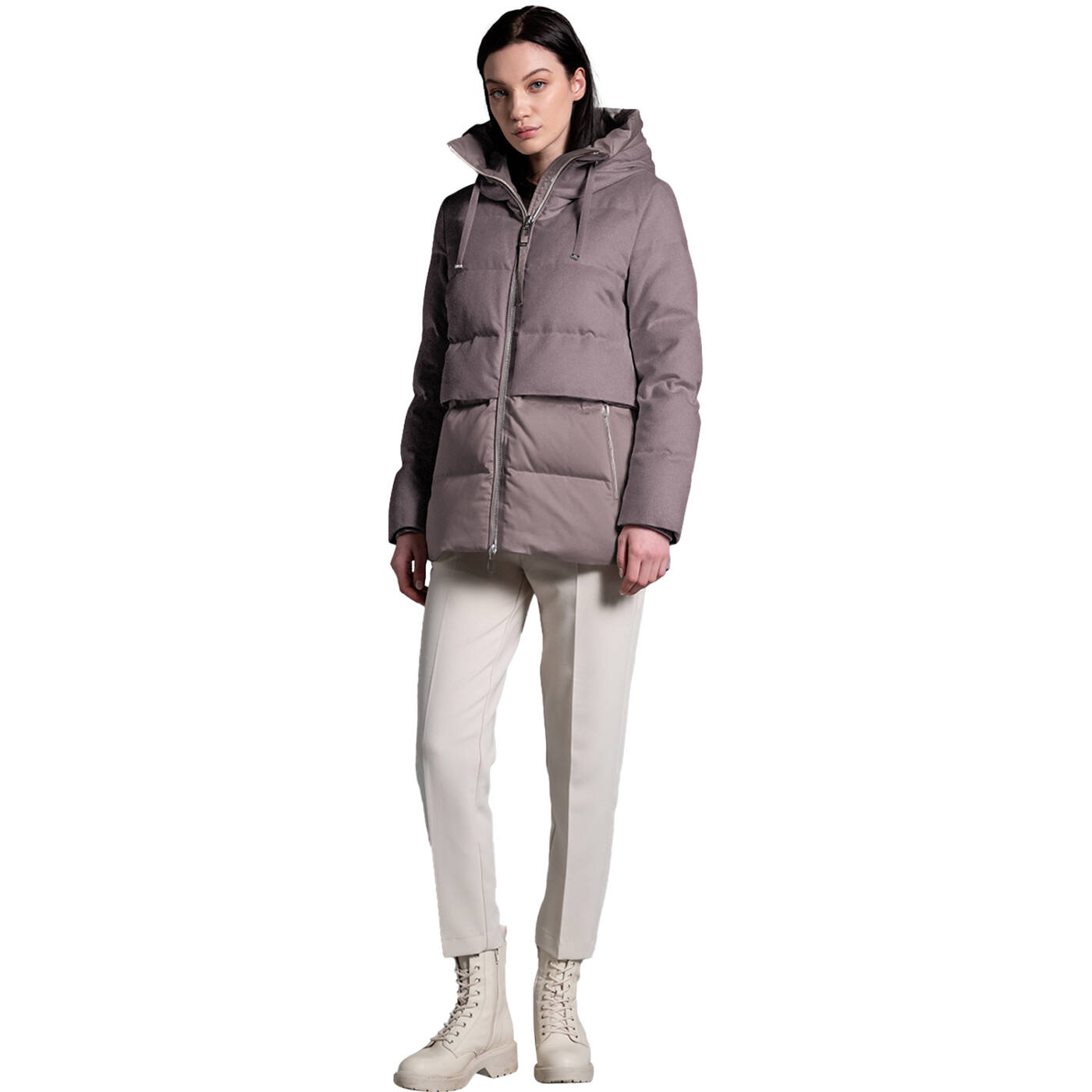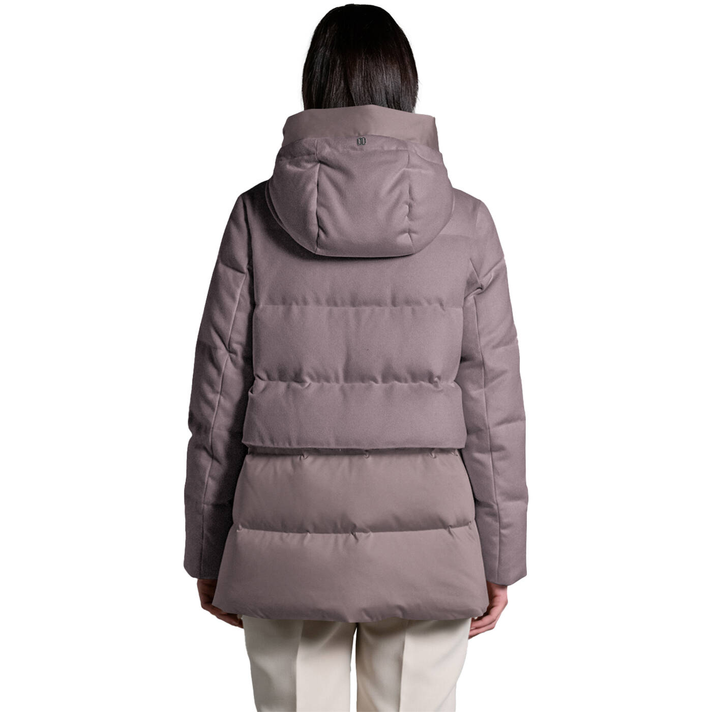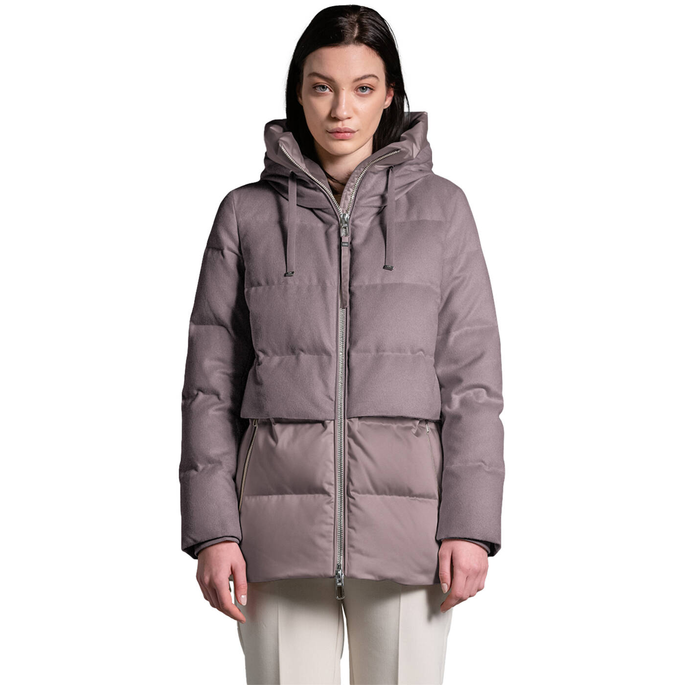 - mit Daunenfüllung aus zwei Materialien, hergestellt aus gesteppter technischer Wolle und Satin
