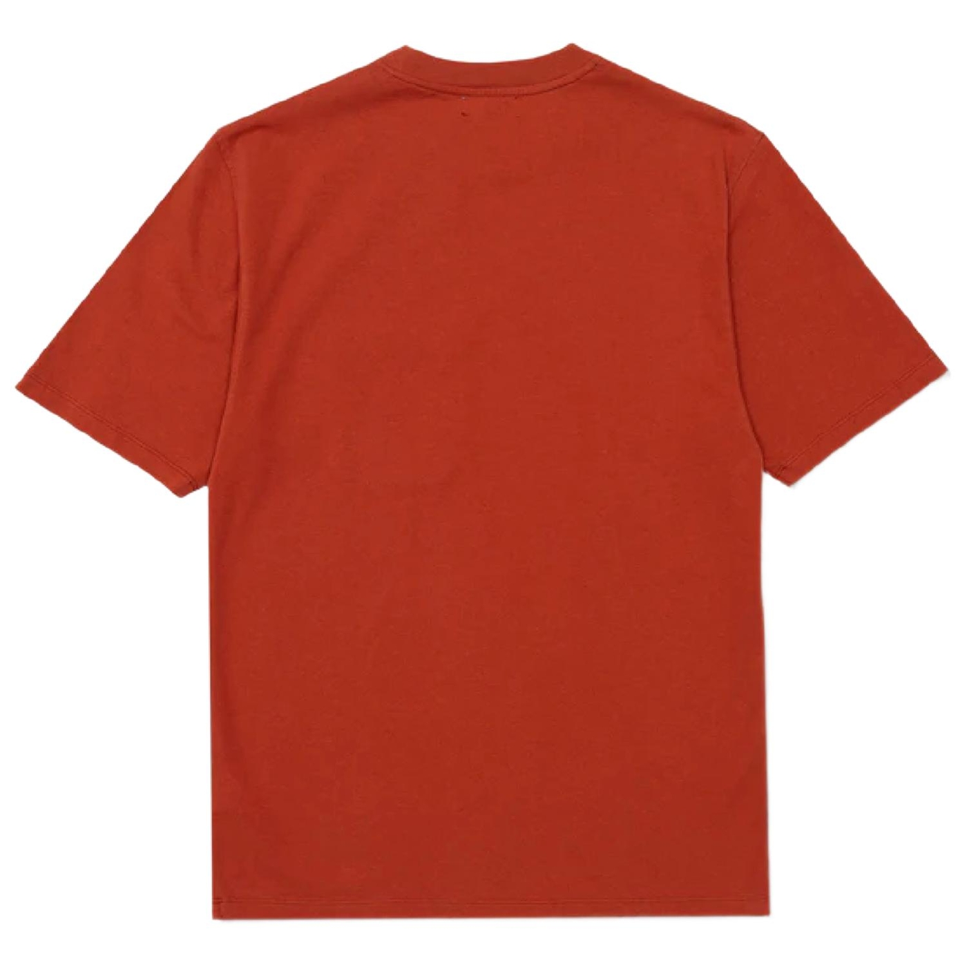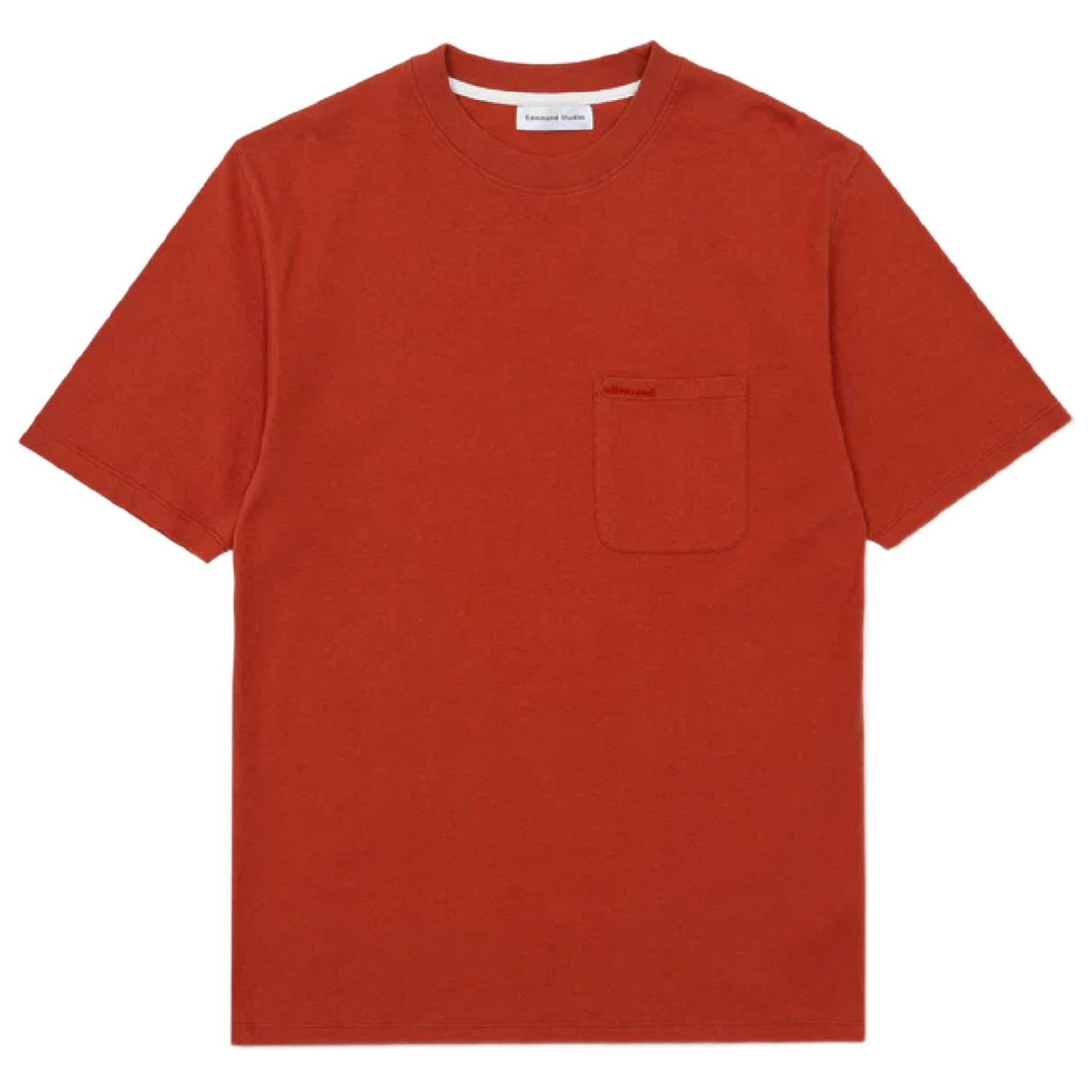 Kurzärmeliges, ziegelrotes T-Shirt aus offenem Stoff mit Logo auf der linken Brust. Aus 100 % Bio-Baumwolle. Hergestellt in Portugal.