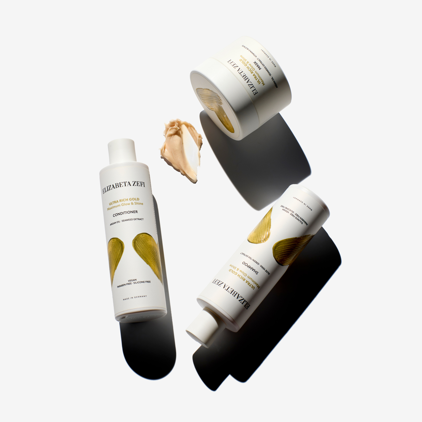Der Ultra Rich Gold Conditioner spendet intensive Feuchtigkeit und verleiht dem Haar durch erlesenes Jojobaöl unwiderstehlichen Glanz. ProVitamin B5, Glycerin, hochwertiges Aloe Vera, wertvolles Arganöl und nährstoffreiches Algenextrakt spenden Feuchtigkeit und machen das Haar geschmeidig. Grüner Tee Extrakt pflegt und beruhigt die Haarstruktur.
