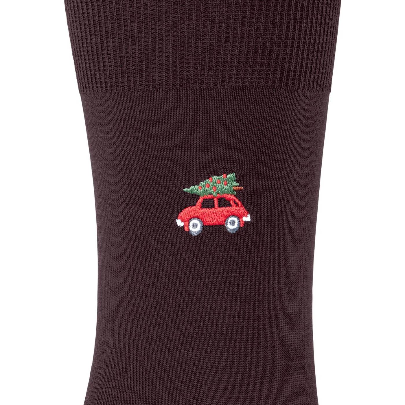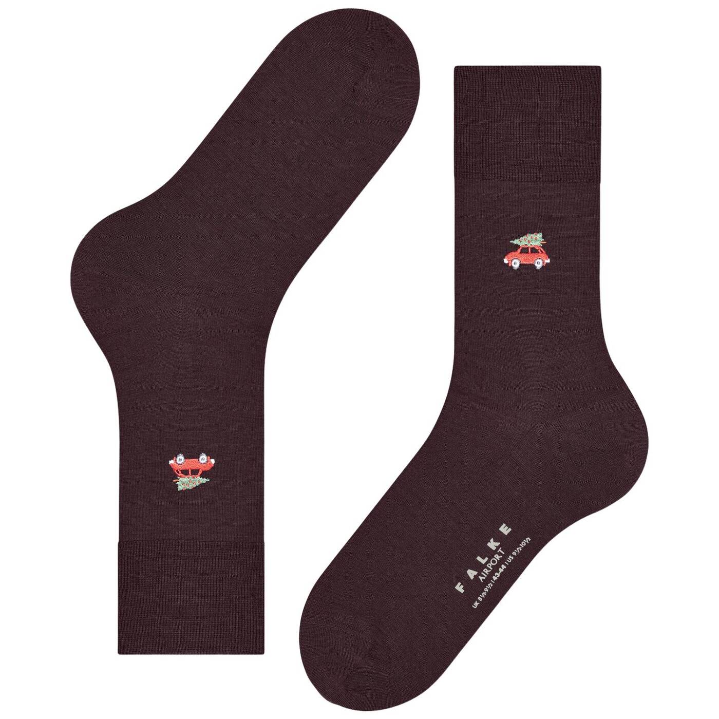 Ein besonderer style für die kalte winterzeit zum verschenken und um sich selbst eine kleine freude zu machen. dieser modische strumpf zeichnet sich durch leichte, klimaregulierende merinowolle auf der außenseite und angenehm weicher baumwolle auf der innenseite aus. das winterliche stickmotiv mit dem motto: driving home for christmas, welches ein traditionelles auto mit einem weihnachtsbaum auf dem dach zeigt, ist ein absolutes highlight. die verstärkten belastungszonen und die perfekte falke passform machen den strumpf zum langlebigen begleiter.