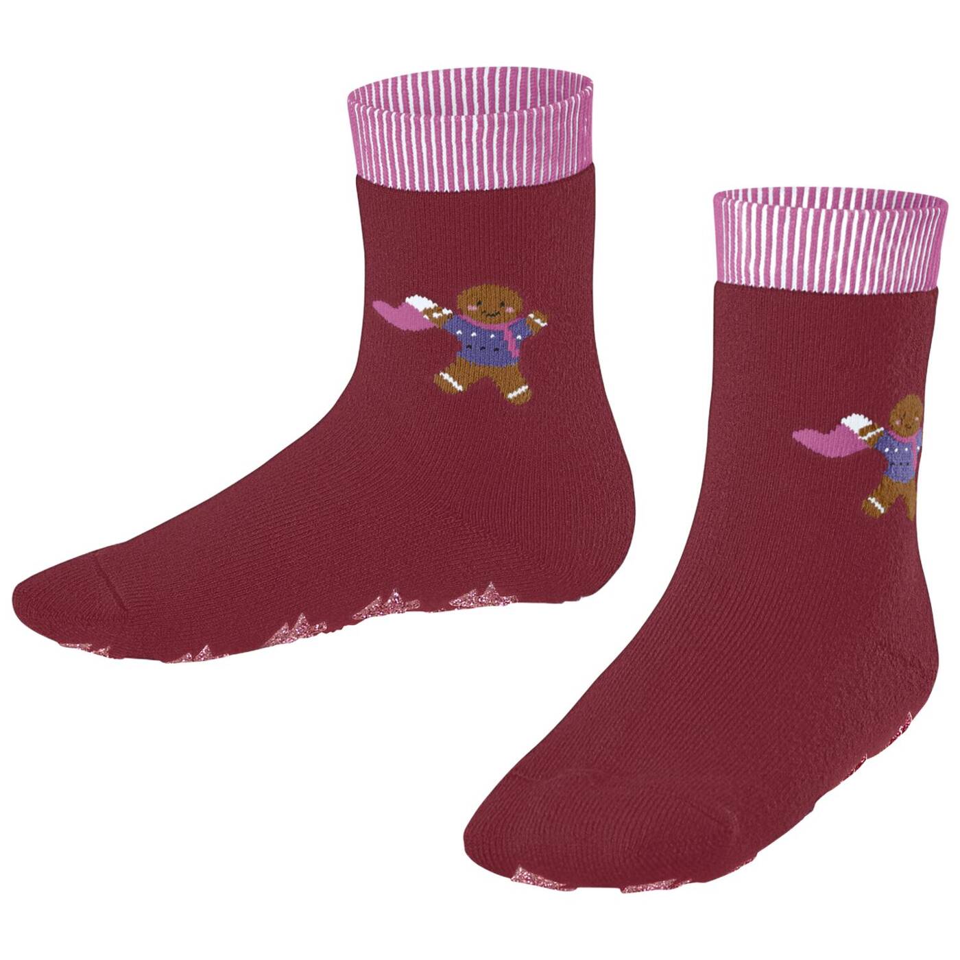 Kuschelige hausstrümpfe für gemütliche weihnachtsabende! dieser strumpf ist aus weicher baumwolle und fühlt sich angenehm auf der haut an. seitlich schmücken niedliche lebkuchenmännchen die strümpfe und sorgen für weihnachtliche stimmung. das verspielte, gestreifte bündchen macht den look komplett. auf der sohle sorgt ein rutschhemmender noppendruck in form von kleinen weihnachtsbäumen für sicheren halt. die perfekte falke-passform garantiert höchsten tragekomfort.