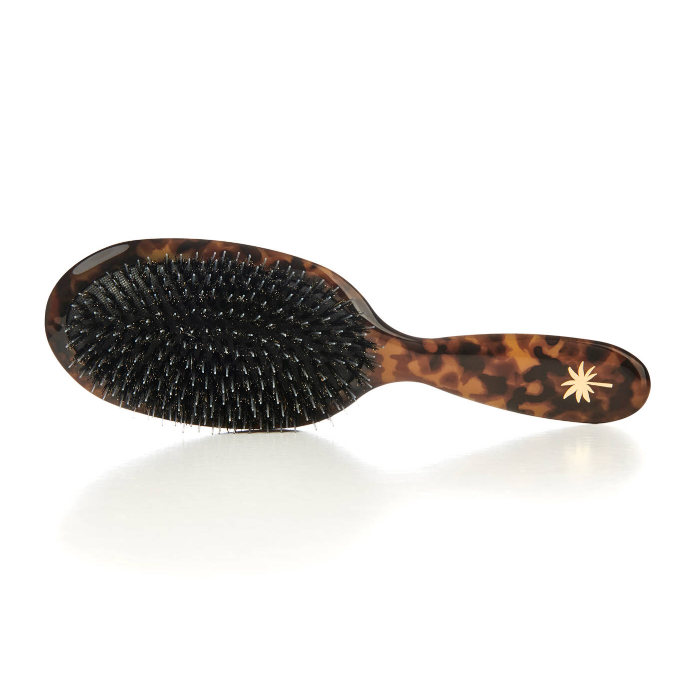 Die Wildschwein- und Nylonborstenbürste Blush von Fan Palm verleiht dem Haar Glanz und Geschmeidigkeit. Die Nylonborsten sind länger, um die Kopfhaut sanft zu stimulieren und das Haar zu entwirren, während die Wildschweinborsten dabei helfen, Talg zu verteilen. Sie regt die Durchblutung der Haarfollikel an und die meisten stellen fest, dass sie die Häufigkeit des Haarewaschens auf alle drei oder vier Tage reduzieren können. Wird in einer wunderschönen Schubladenbox mit Goldfoliendetails geliefert.