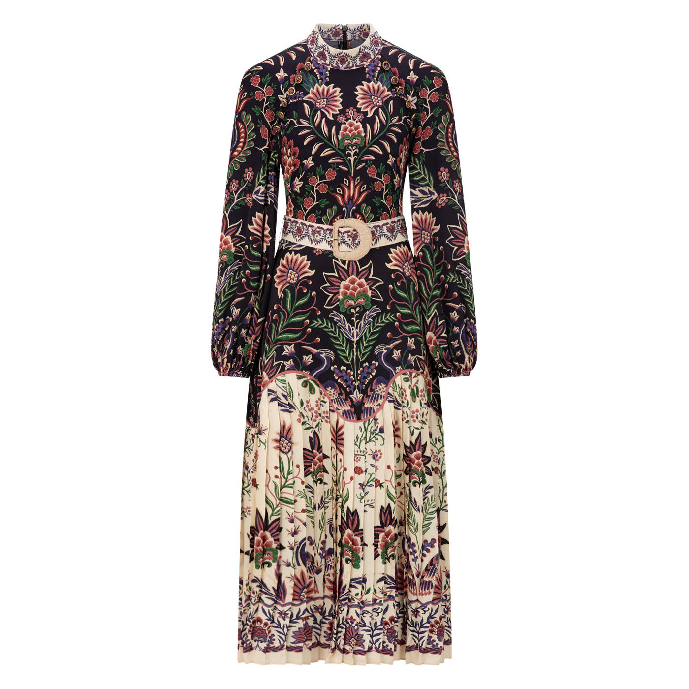 Oberteil: dunkler Grundton, mit opulentem, farbenfrohem Blumenmuster