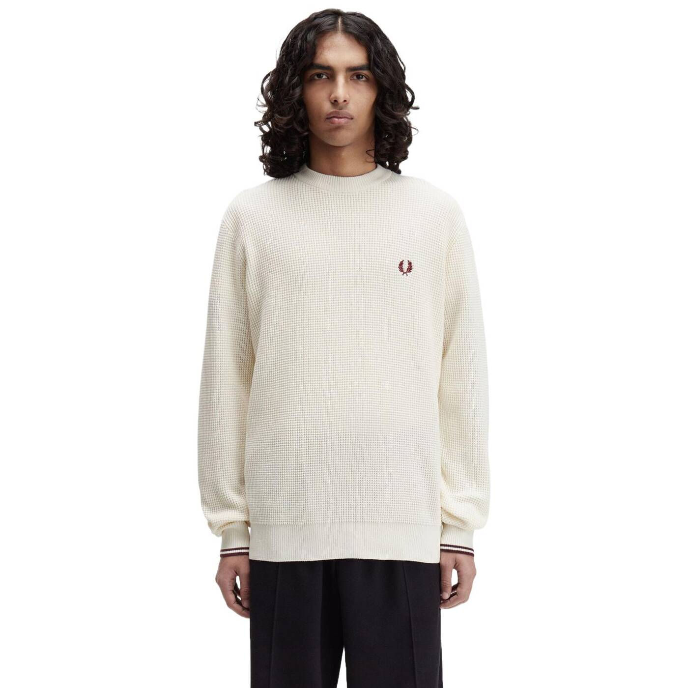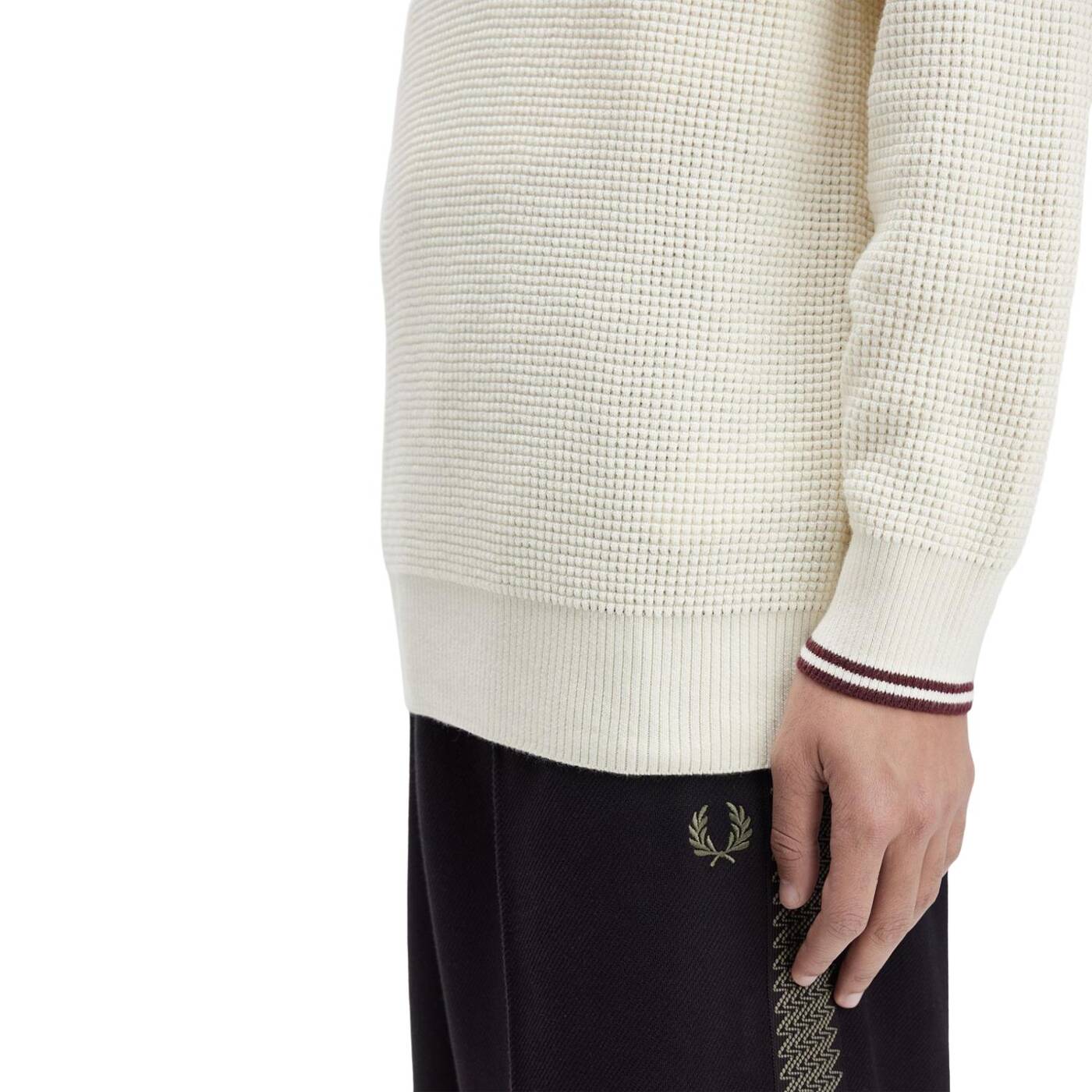 Ein Pullover aus gekämmter Baumwolle mit Waffelstruktur.