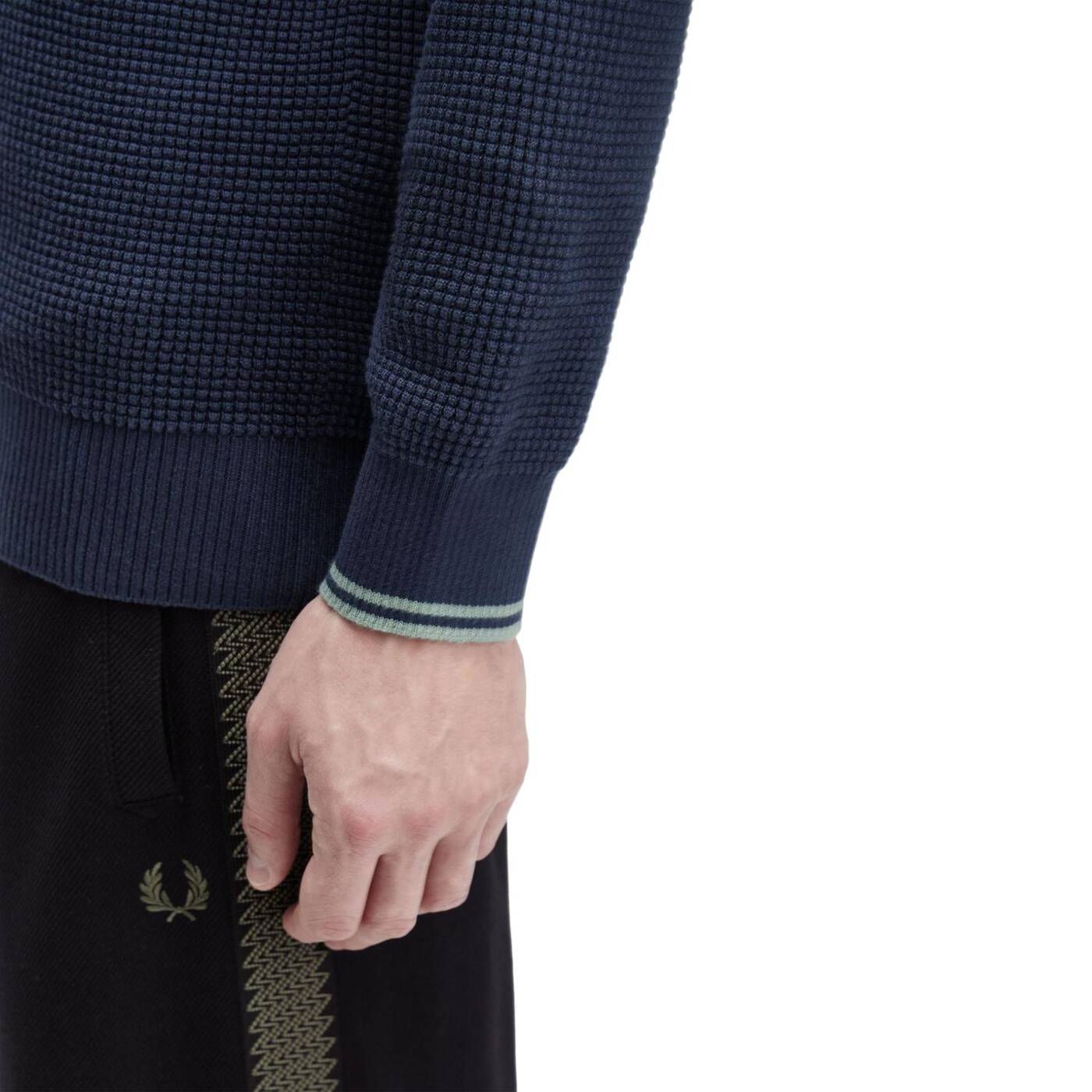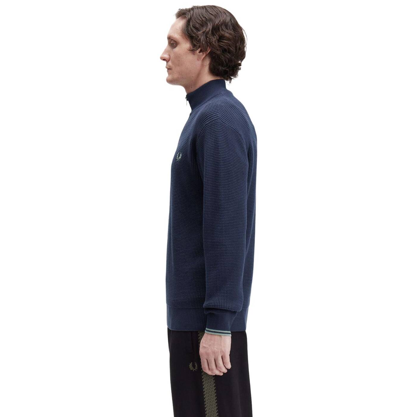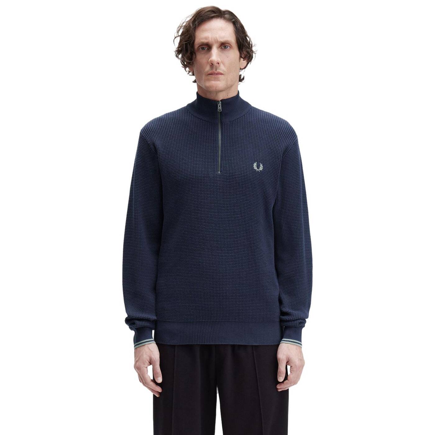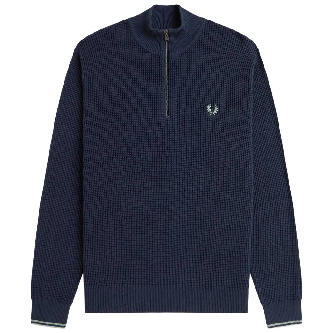 Strick aus gekämmter Baumwolle / Normale Passform / Halblanger Reißverschluss / Abschlüsse mit breiter Rippung / Lorbeerkranz-Logostickerei auf der linken Brust