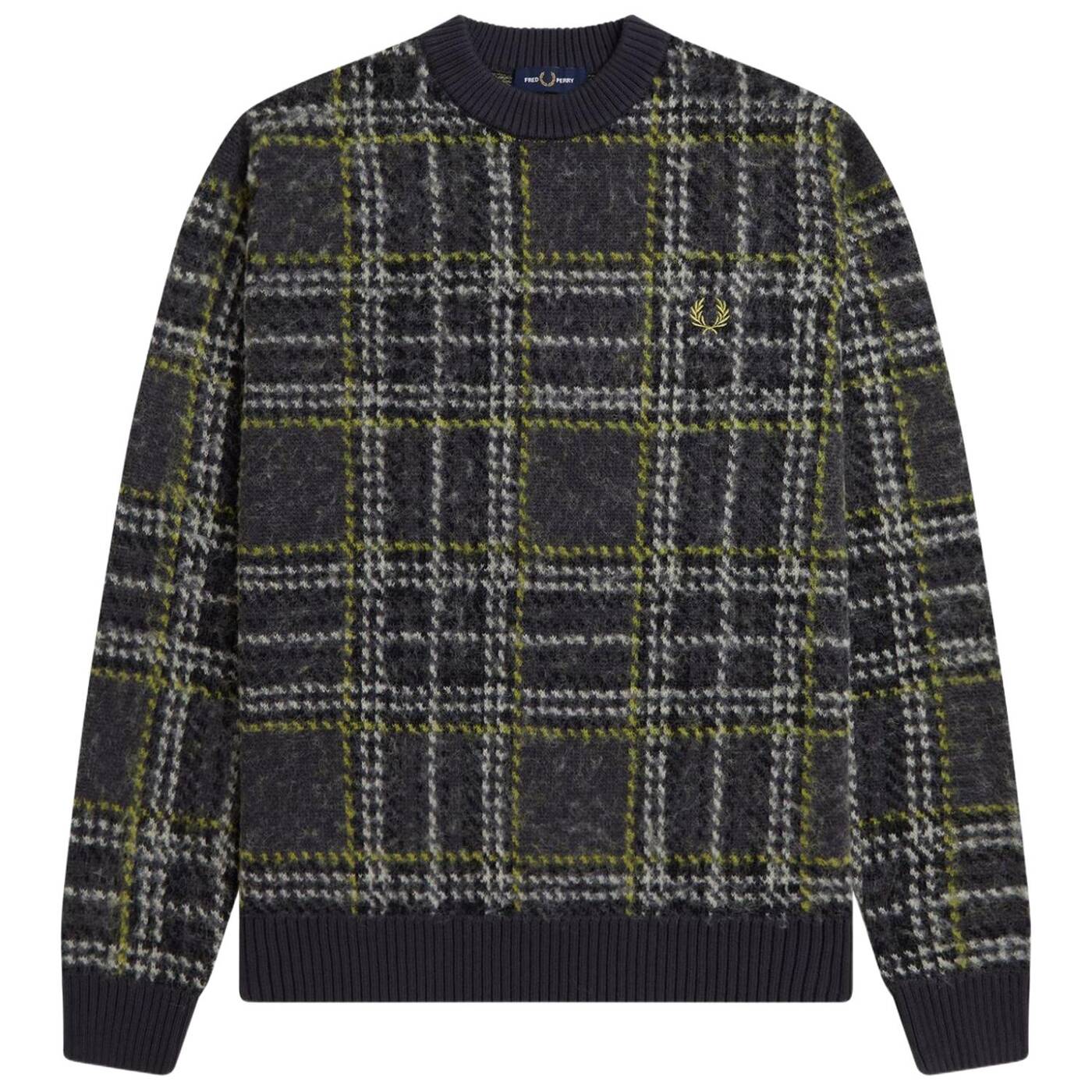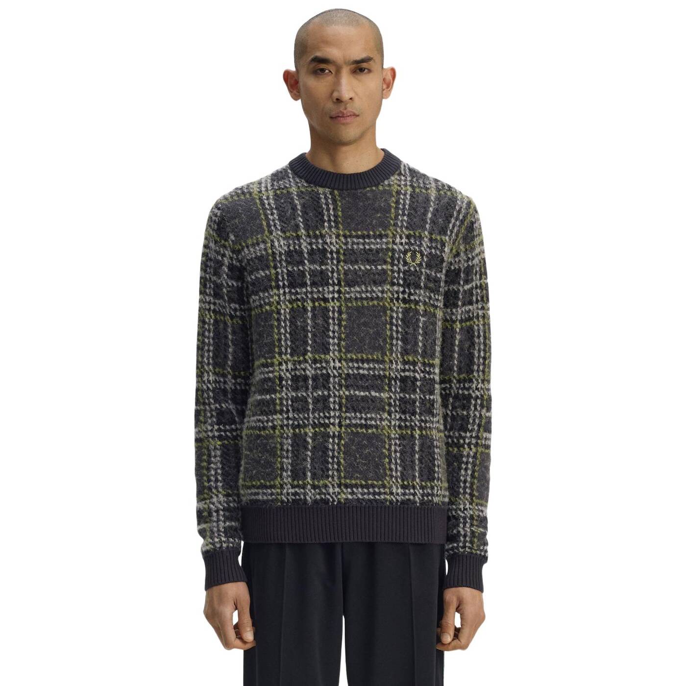 Ein Pullover mit Rundhalsausschnitt und Stewart-Schottenkaro aus einem weichen Alpaka-Mischgarn.