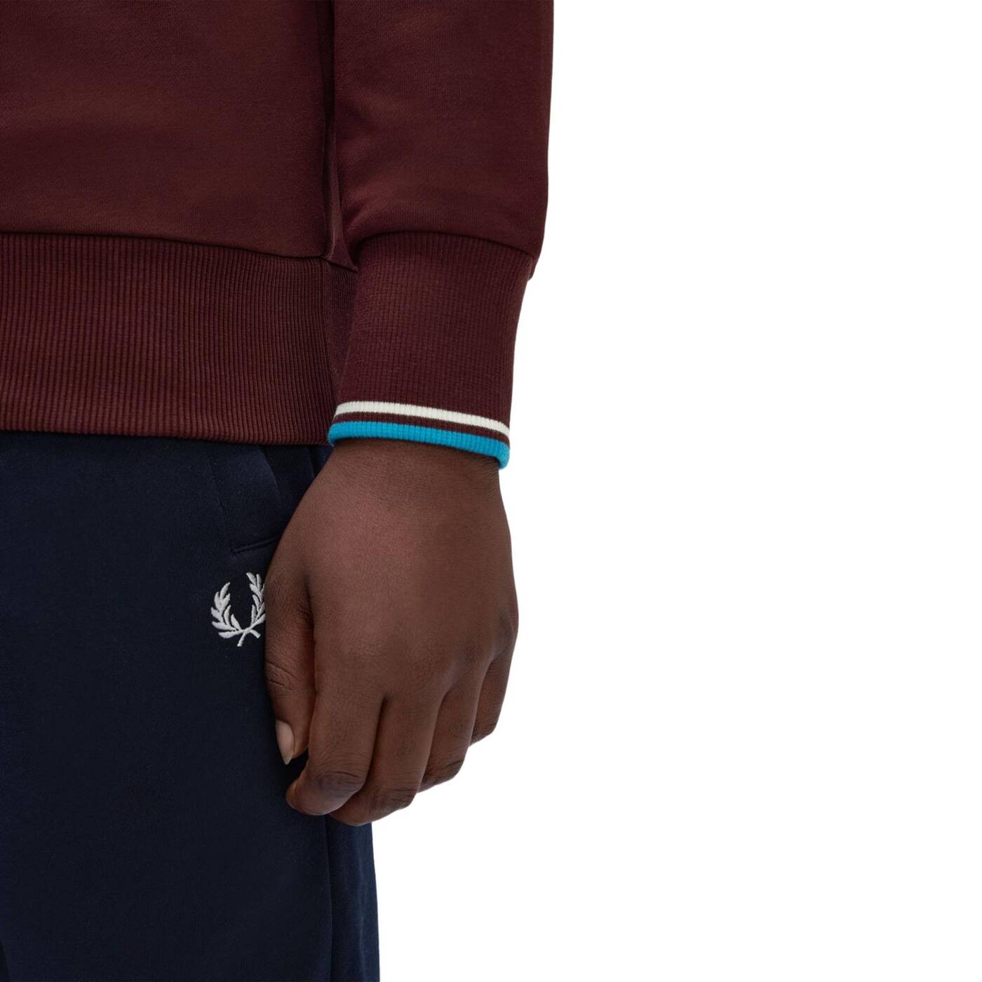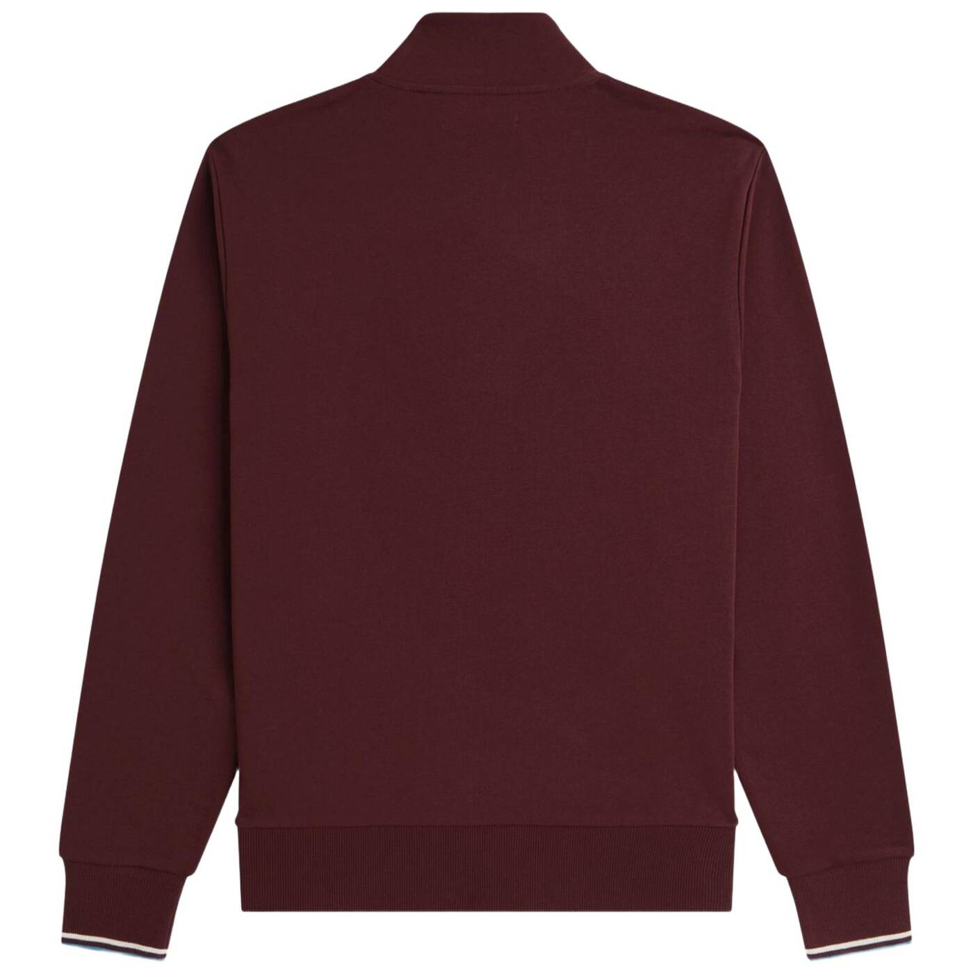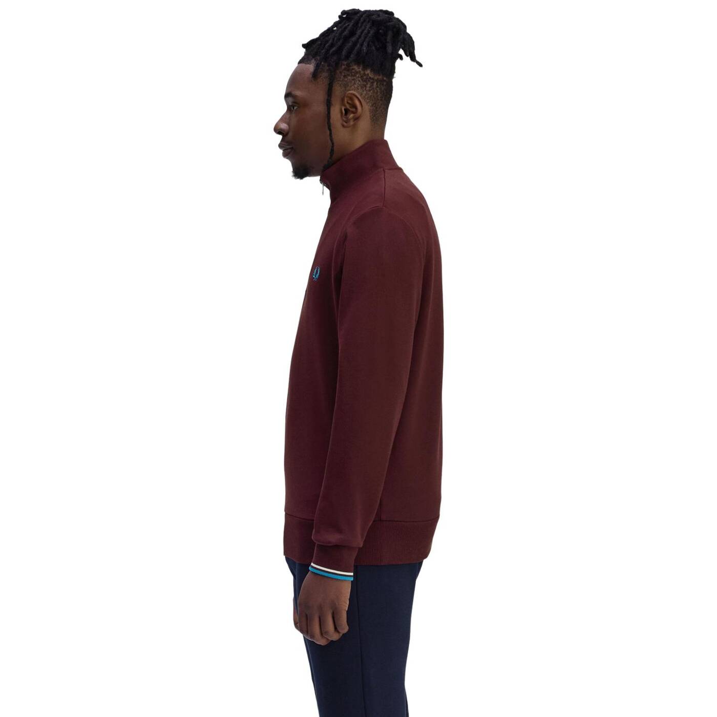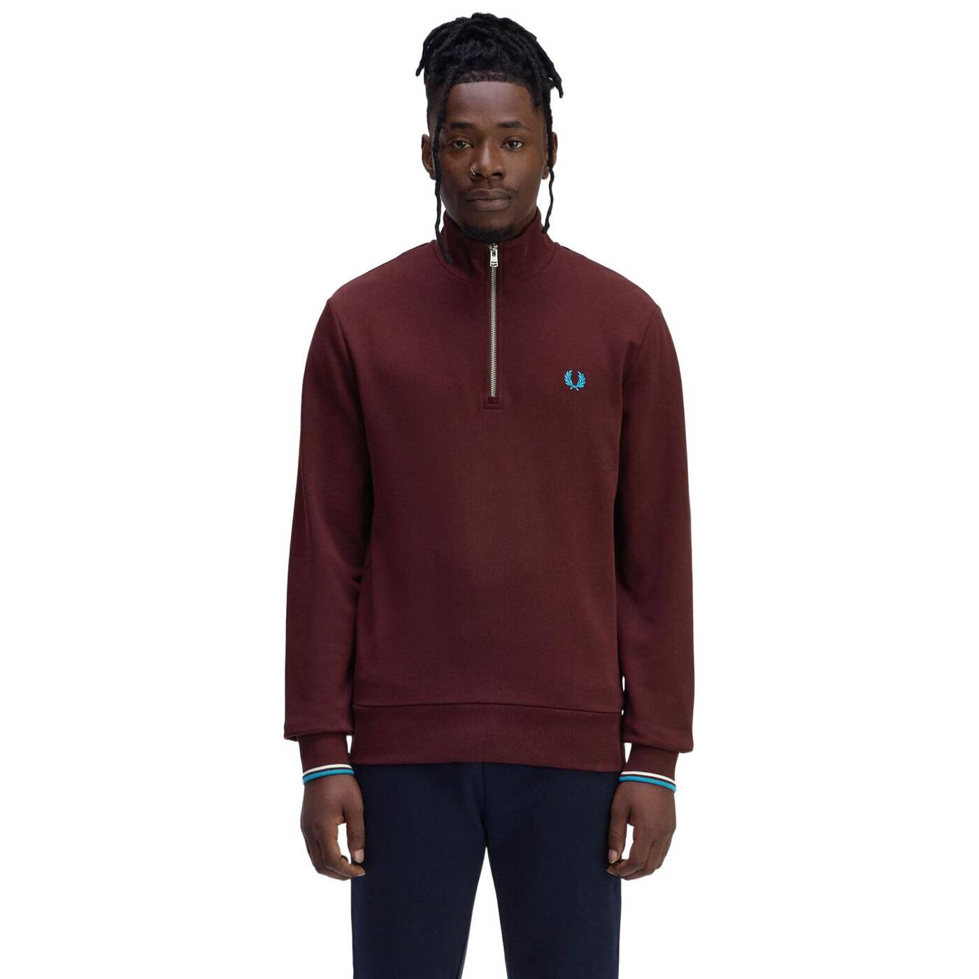 Baumwolloberteil mit Halbreißverschluss und Doppelstreifen an den Bündchen.