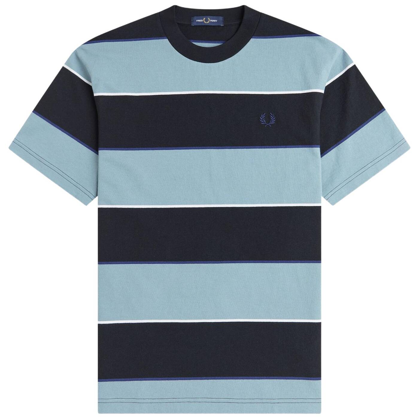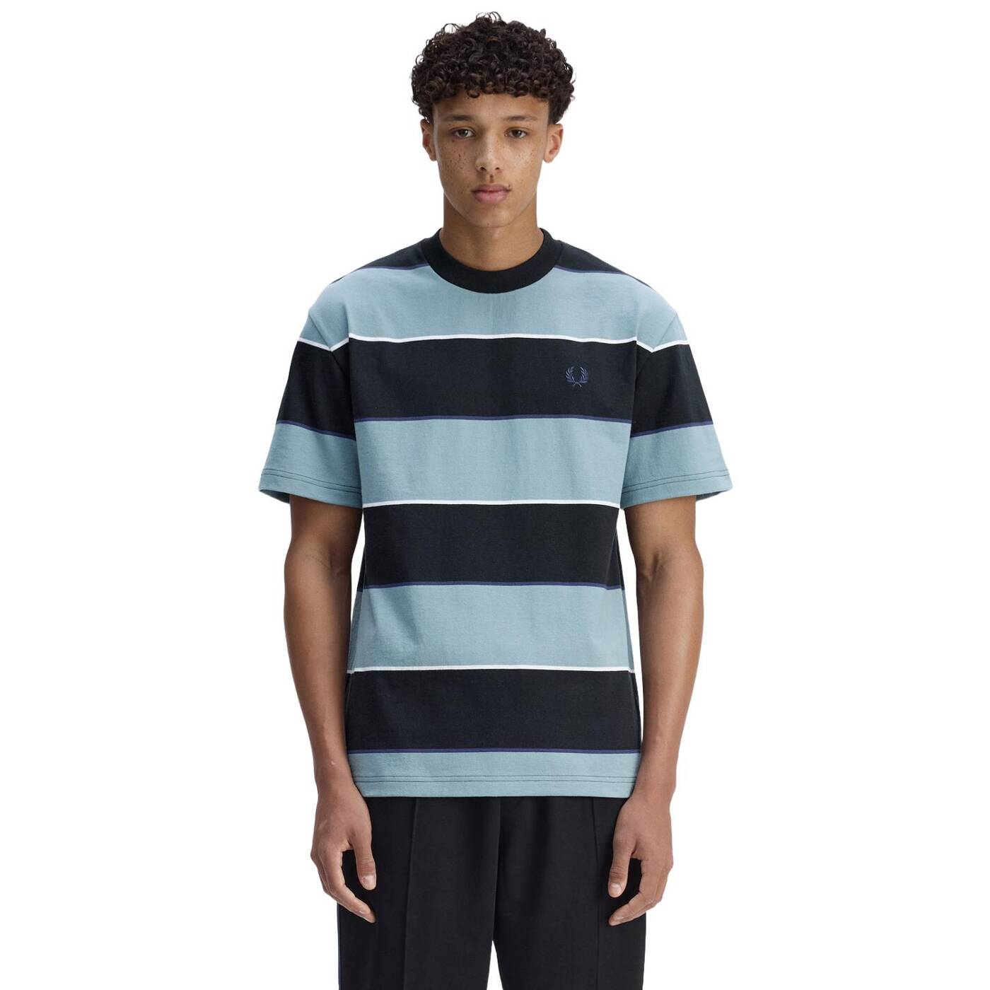 Ein gestreiftes Baumwoll-T-Shirt aus schwererem Material mit feuchtigkeitsregulierendem Trageerlebnis.