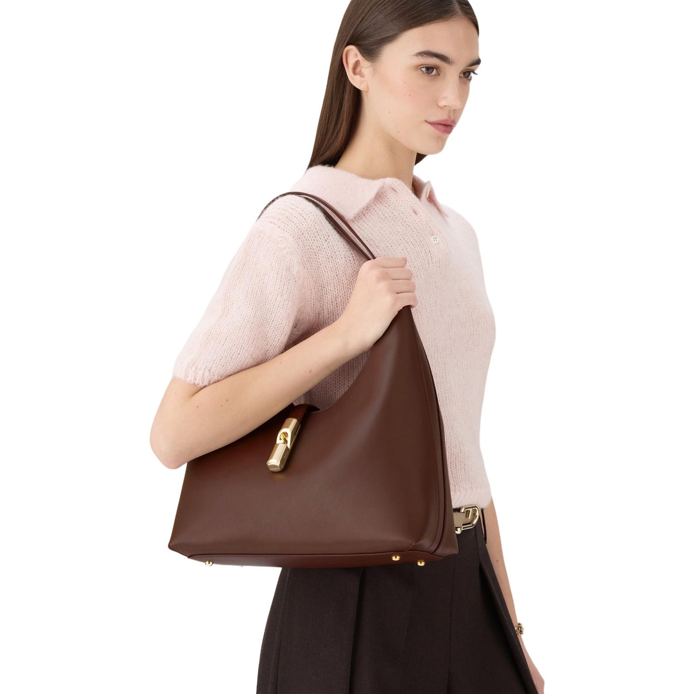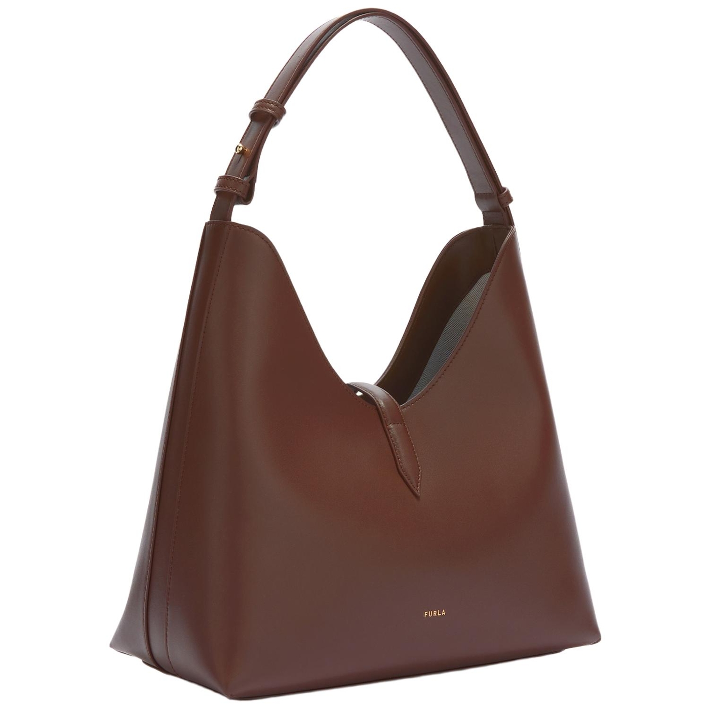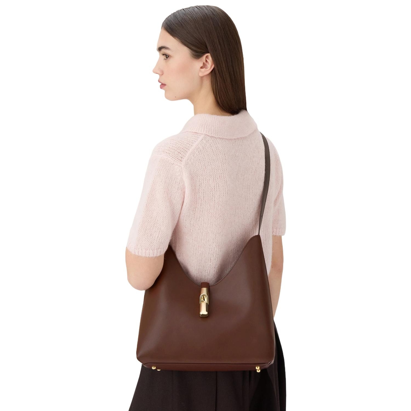 Die weiche Silhouette und die entspannte Struktur dieser Furla Goccia Hobo Bag verleihen ihr einen eleganten und modernen Akzent. Sie ist aus seidenweichem Leder gefertigt, das sich angenehm anfühlt, und bietet im Inneren genügend Platz für all Ihre wichtigen Dinge. Der neue zylindrische Beschlag, der an ein Gewicht erinnert und mit dem ikonischen Furla Arch-Logo verziert ist, verleiht dem passenden Riemen den letzten Schliff.