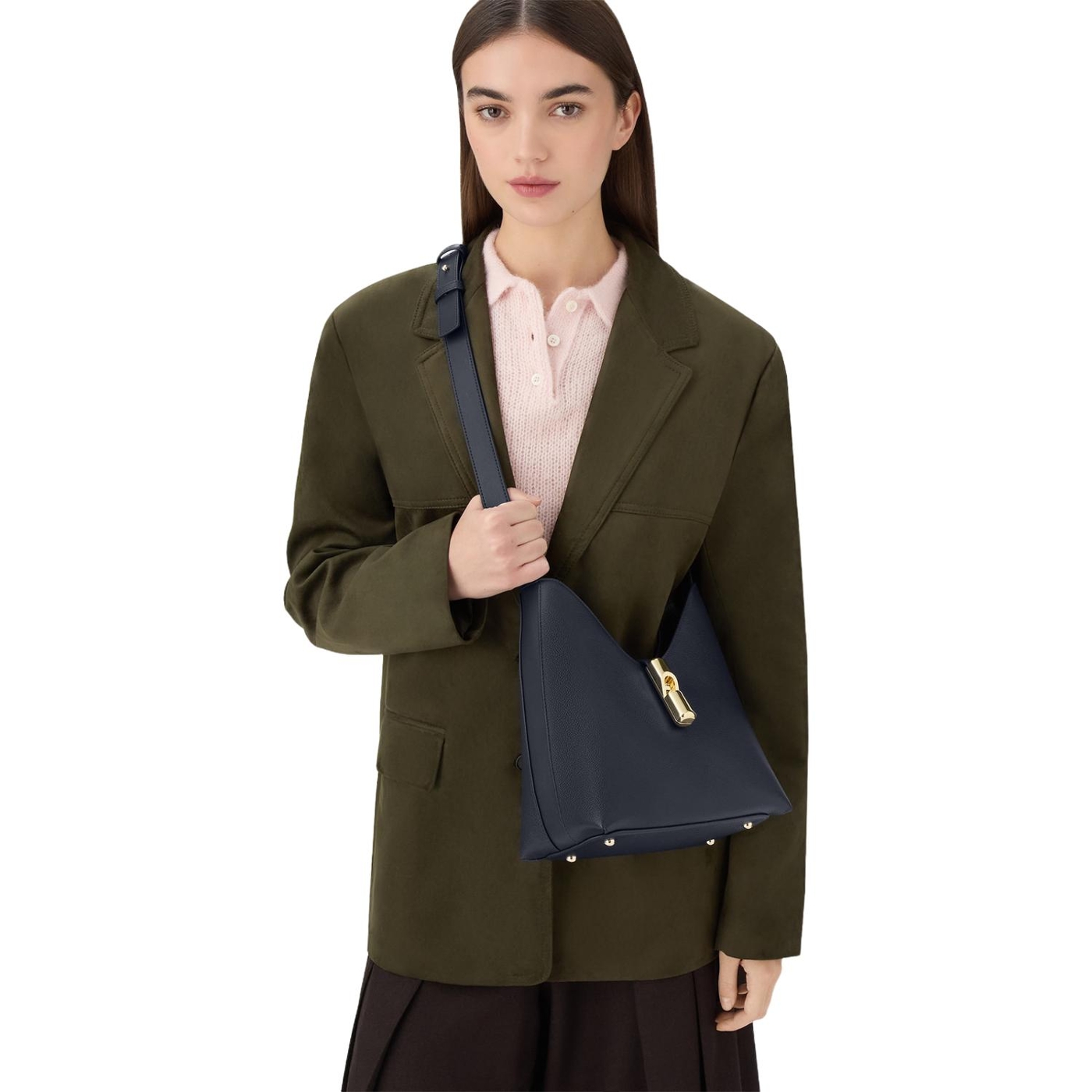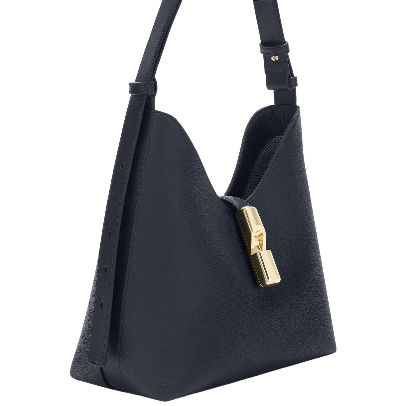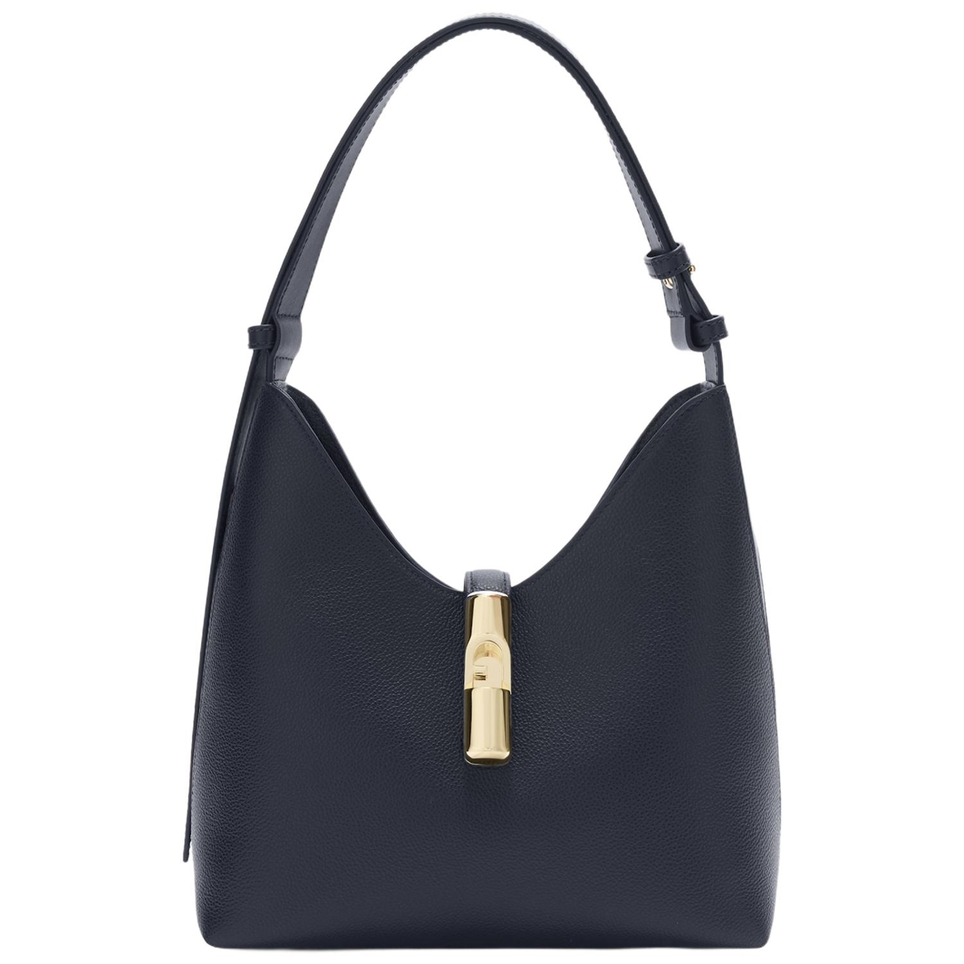 Die Furla Goccia Hobo Bag ist aus Glattleder und bedrucktem Kalbsleder gefertigt und zeichnet sich durch ihre weiche, unstrukturierte Form aus. Die Tasche ist mit einer Lasche versehen, die zu dem verstellbaren, kontrastierenden Ledergriff passt. Neue zylindrische Hardware mit dem Furla Arch-Logo verschließt das Accessoire auf elegante Weise.