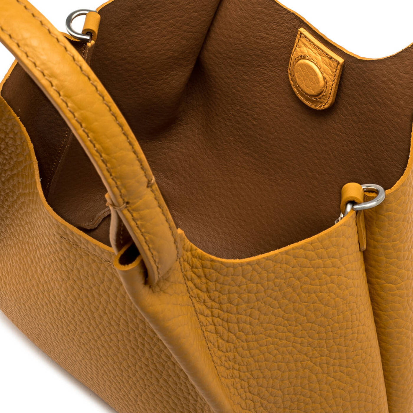 Die Ikone der Marke, die DUA, unterscheidet sich durch ein schlichtes, aber dennoch modernes Design aus. Gefertigt aus weichem Leder mit double Maxi-Narbung, verfügt sie über ein ungefüttertes Einzelfach mit innenliegender Clutch, obere Paspelierung aus genarbtem Leder und doppelte Henkel in passender Farbe. Praktisch und essenziell ist sie die ideale Tasche um die Outfits jeder Frau zu vervollständigen. Dank des mitgelieferten Trageriemens kann sie sowohl in der Hand als auch als Crossbody getragen werden.