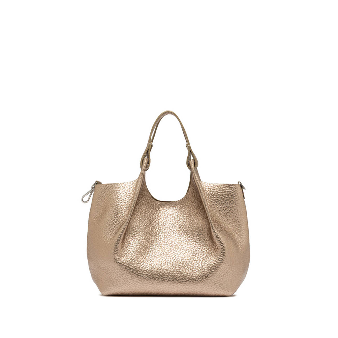 Die Ikone der Marke, die Tasche DUA, ist aus Bubble-Double Leder mit einer einzigartigen Oberflächenstruktur gefertigt. Sie verfügt über ein ungefüttertes Einzelfach, obere Paspeln aus genarbtem Leder und zwei dazu passende Henkel. Praktisch und essenziell, perfekt um jeden Look mit Stil zu vervollständigen. Sie kann in der Hand oder über der Schulter getragen werden.