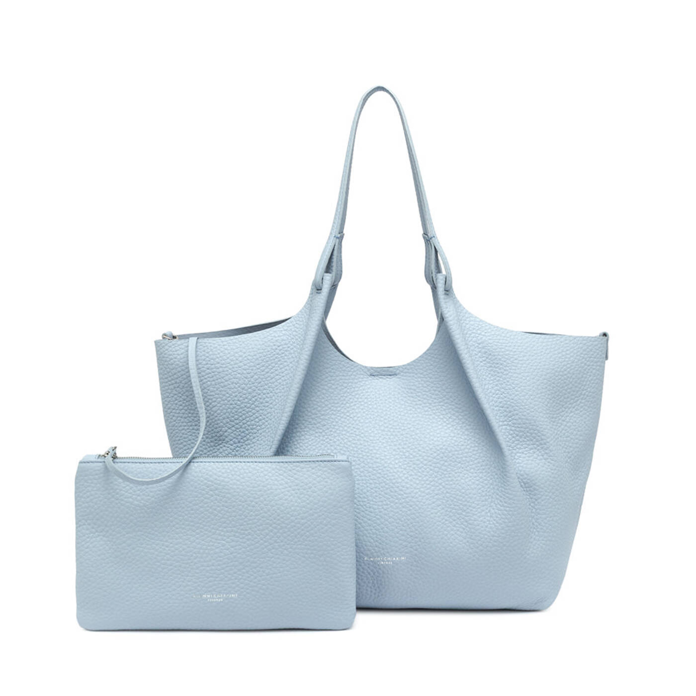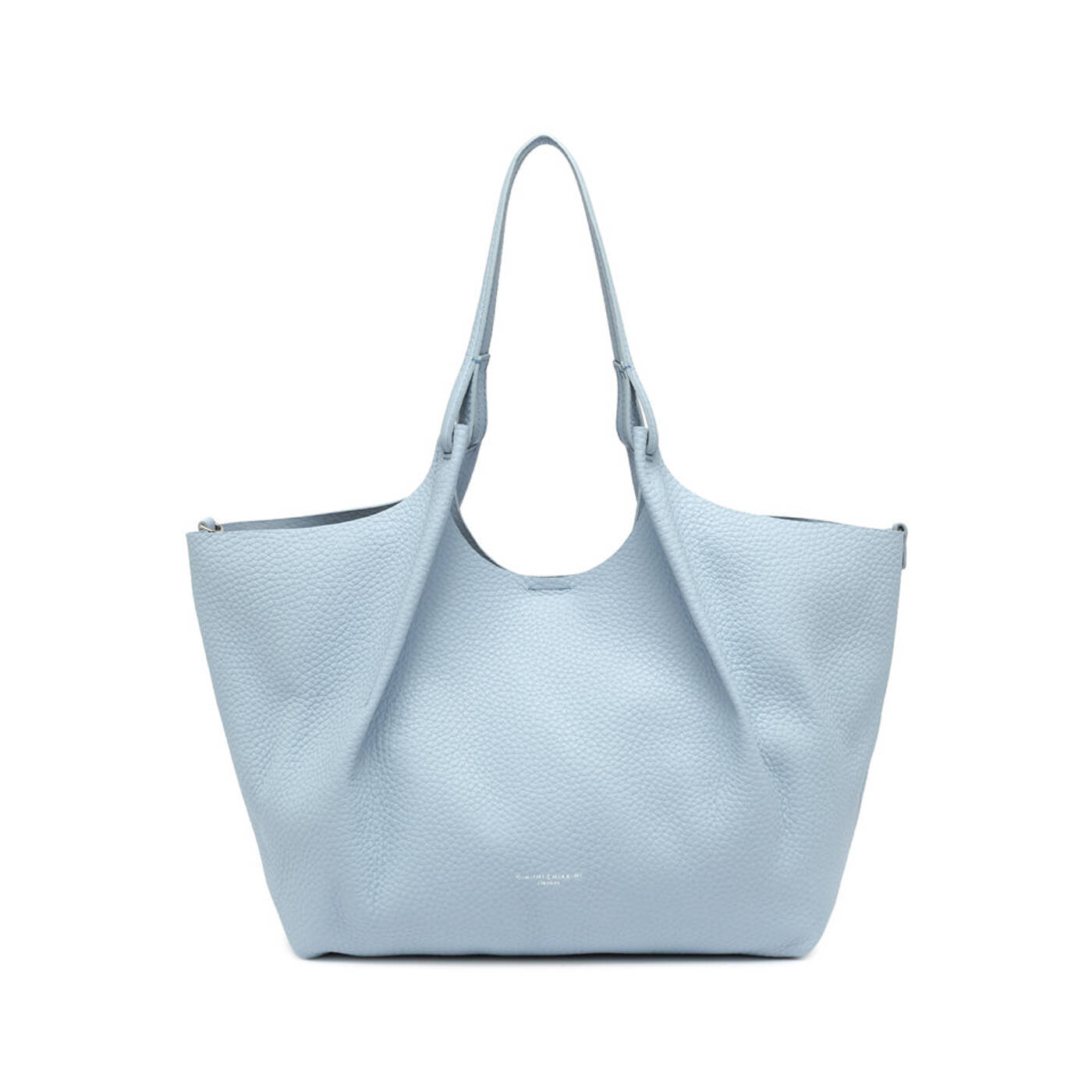 Die Ikone der Marke, die Tasche DUA, ist aus Bubble-Double Leder mit einer einzigartigen Oberflächenstruktur gefertigt. Sie verfügt über ein ungefüttertes Einzelfach, obere Paspeln aus genarbtem Leder und zwei dazu passende Henkel. Praktisch und essenziell, perfekt um jeden Look mit Stil zu vervollständigen. Sie kann in der Hand oder über der Schulter getragen werden.