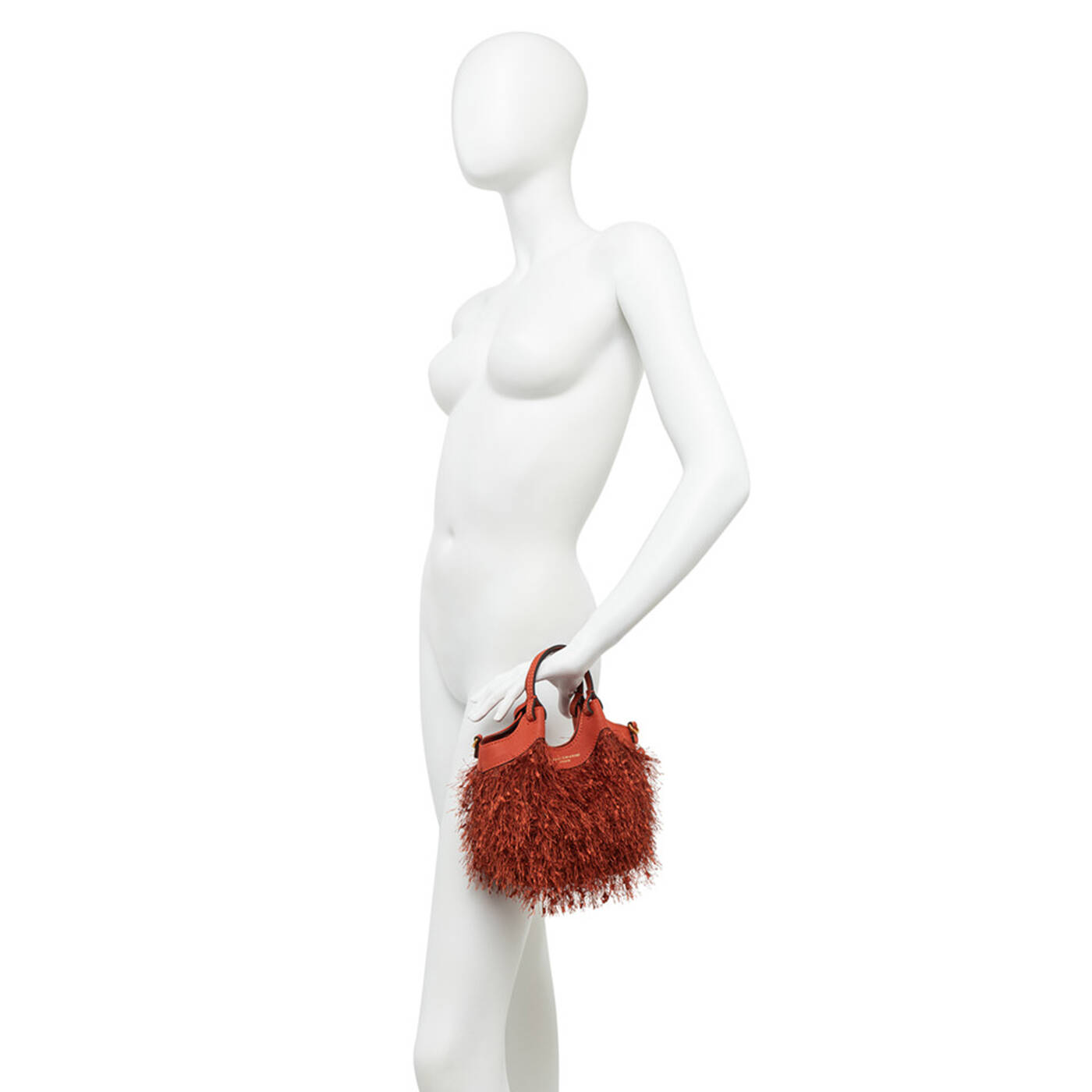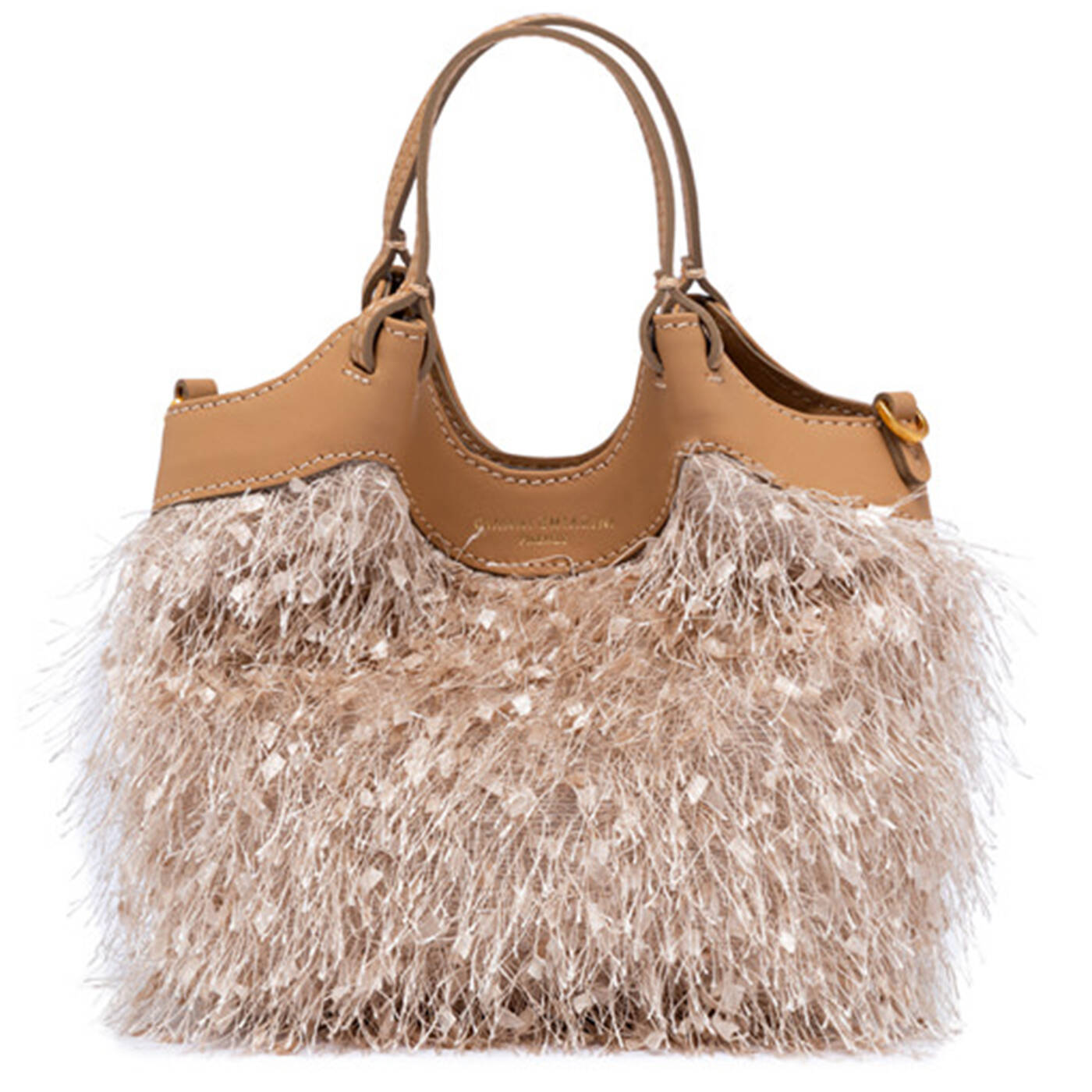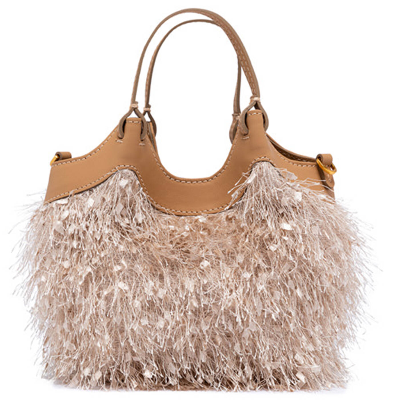- Details an der Oberseite und doppelten Henkeln aus Leder