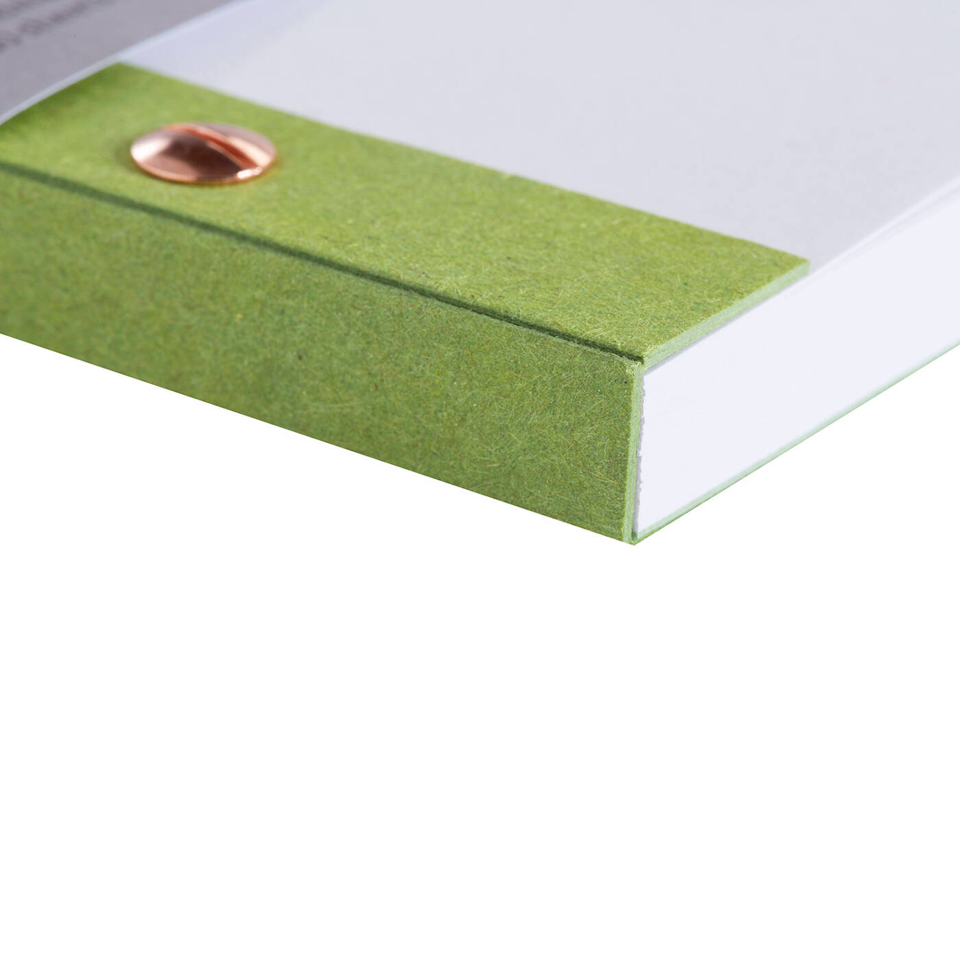 • Cover aus einem leuchtend grünen Naturmaterial wurde im Buchdruck veredelt