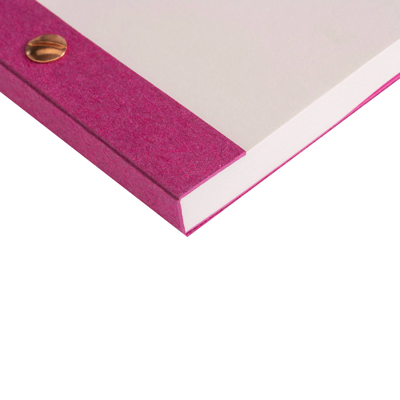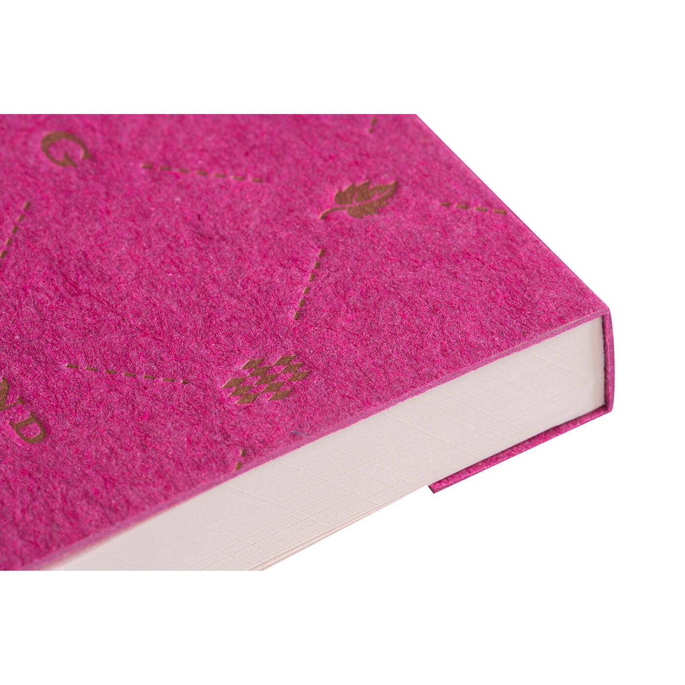 • Cover aus einem leuchtend pinkem Naturmaterial wurde im Buchdruck veredelt