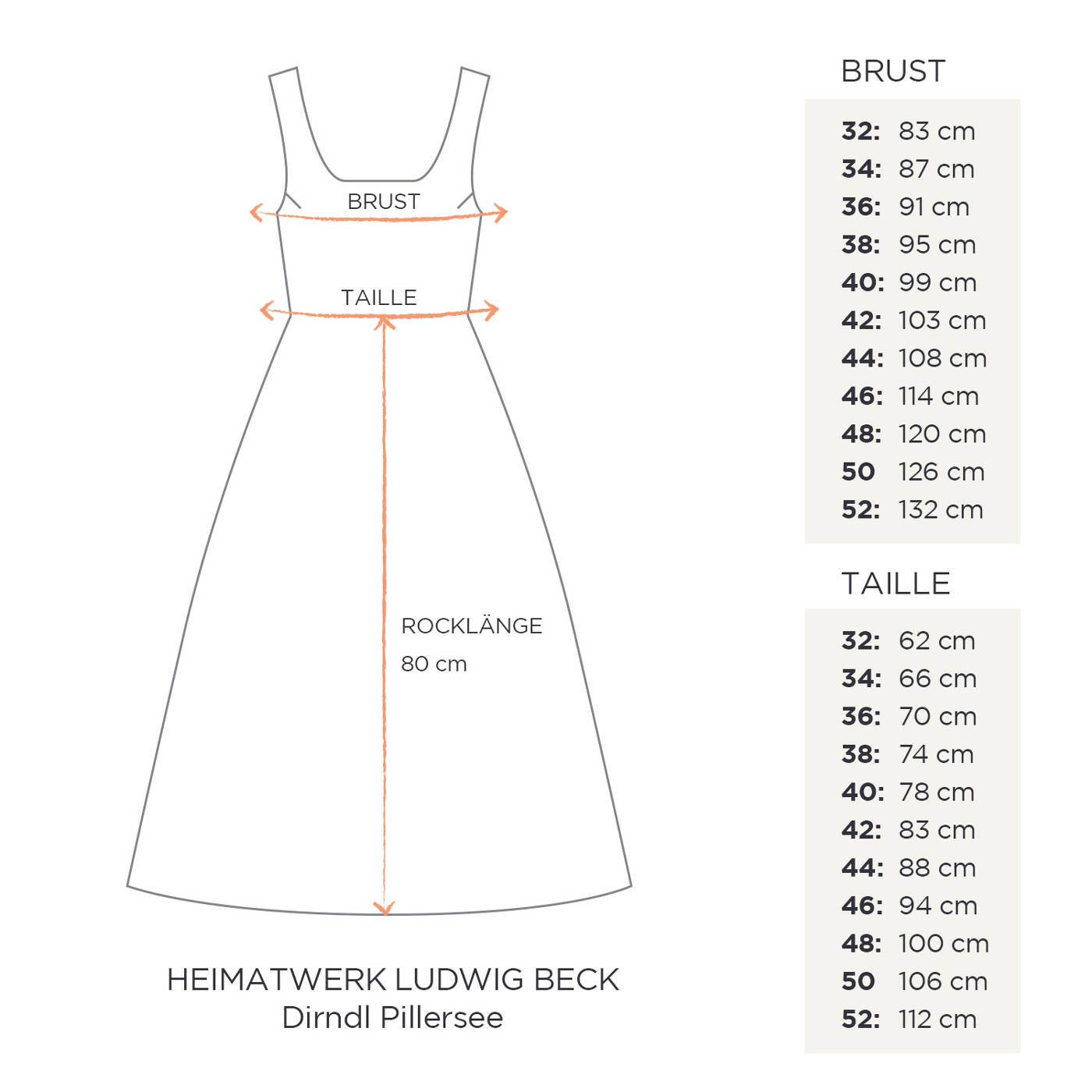 Vermessen Sie für die Ermittlung Ihrer Dirndlgröße Ihren Brust-, Taillen- und Hüftumfang. Nehmen Sie dafür an der stärksten Stelle Ihrer Brust und Ihres Gesäßes Maß und ermittelm Sie den Umfang Ihrer Taille an der schmalsten Stelle des Rumpfes.