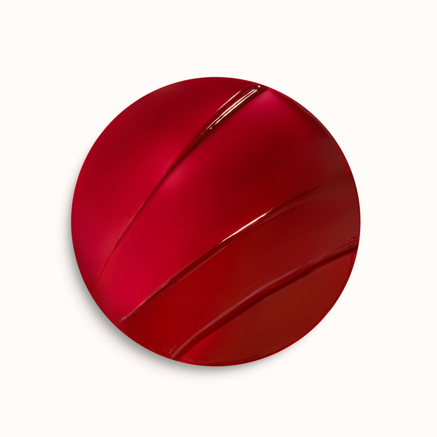 Pierre Hardy entwarf ein schlankes Objekt mit Oberflächen aus lackiertem und gebürstetem Metall. Der Verschluss ist mit dem Hermès-Exlibris verziert. Rouge Brillant Silky wird von einem Leinenbeutel in der Farbe Rouge H geschützt, der in eine orangefarbene Schachtel gebettet ist.