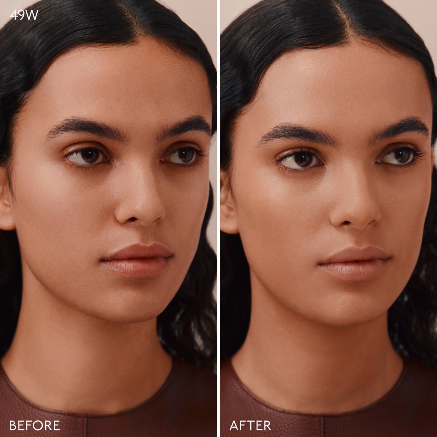 Die pflegende Foundation mit matt-leuchtendem Finish kann mit dem Pinsel Le perfecteur oder mit der Fingerspitze auf das gesamte Gesicht aufgetragen werden. Anhand der verwendeten Menge der Foundation lässt sich die Deckkraft individuell anpassen, um so wahlweise ein natürlicheres oder eleganteres Ergebnis zu erzielen. Weiterhin kann die Foundation auch eingeklopft werden, um für mehr Deckkraft zu sorgen oder gezielt Hautunregelmäßigkeiten zu kaschieren.