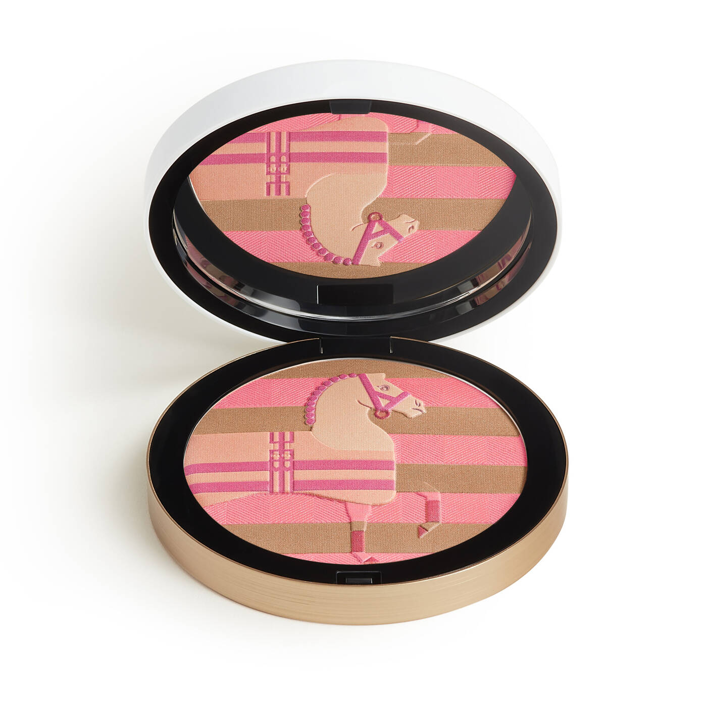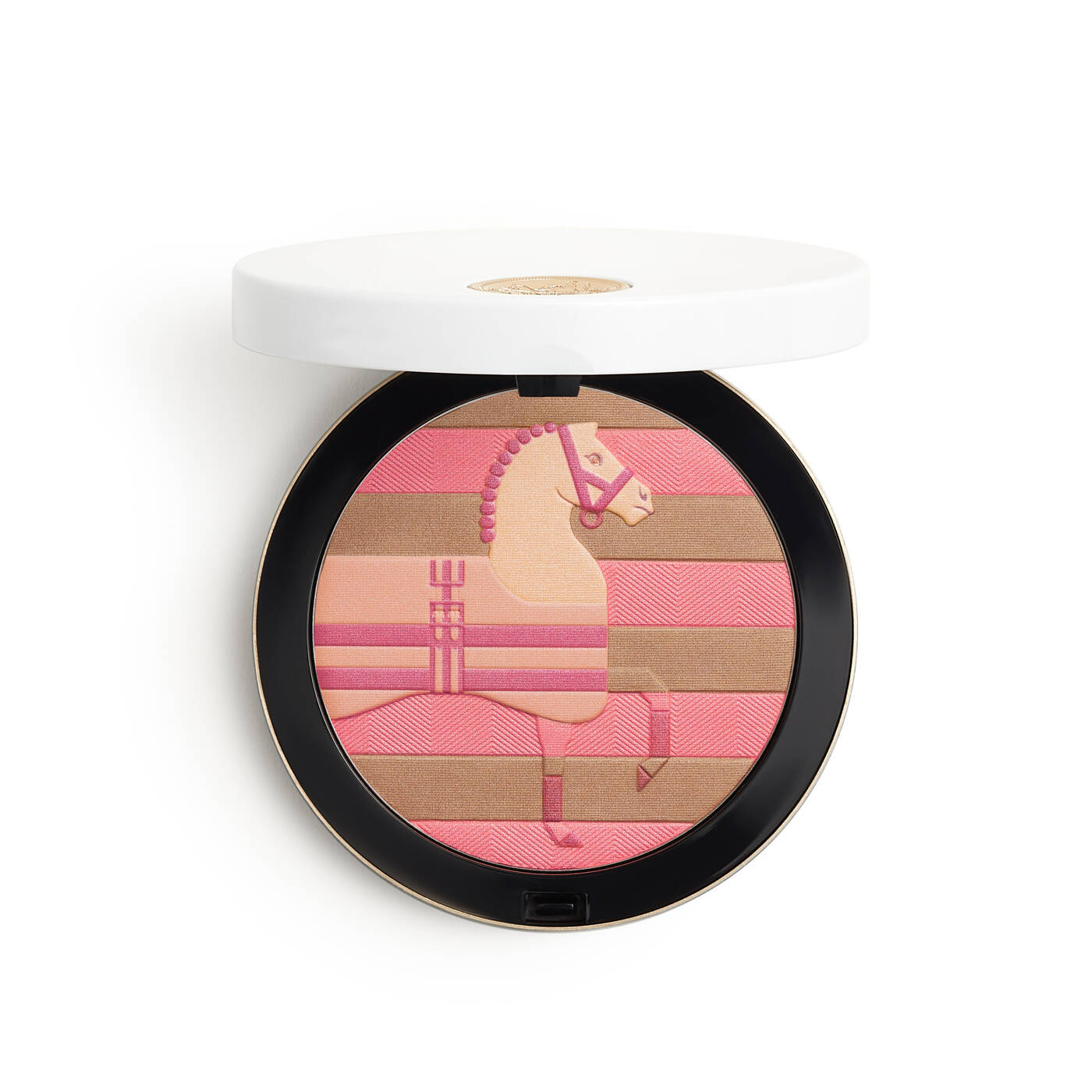 Der seidige Puder Rocabar in limitierter Edition ist eine Hommage an das von Henri d’Origny entworfene Tuchdesign Rocabar, das von den Decken inspiriert ist, mit denen im 19. Jahrhundert Rennpferde geschmückt wurden. Er verleiht der Haut eine natürliche, strahlende und lang anhaltende Bräune mit rosafarbenen Reflexen.