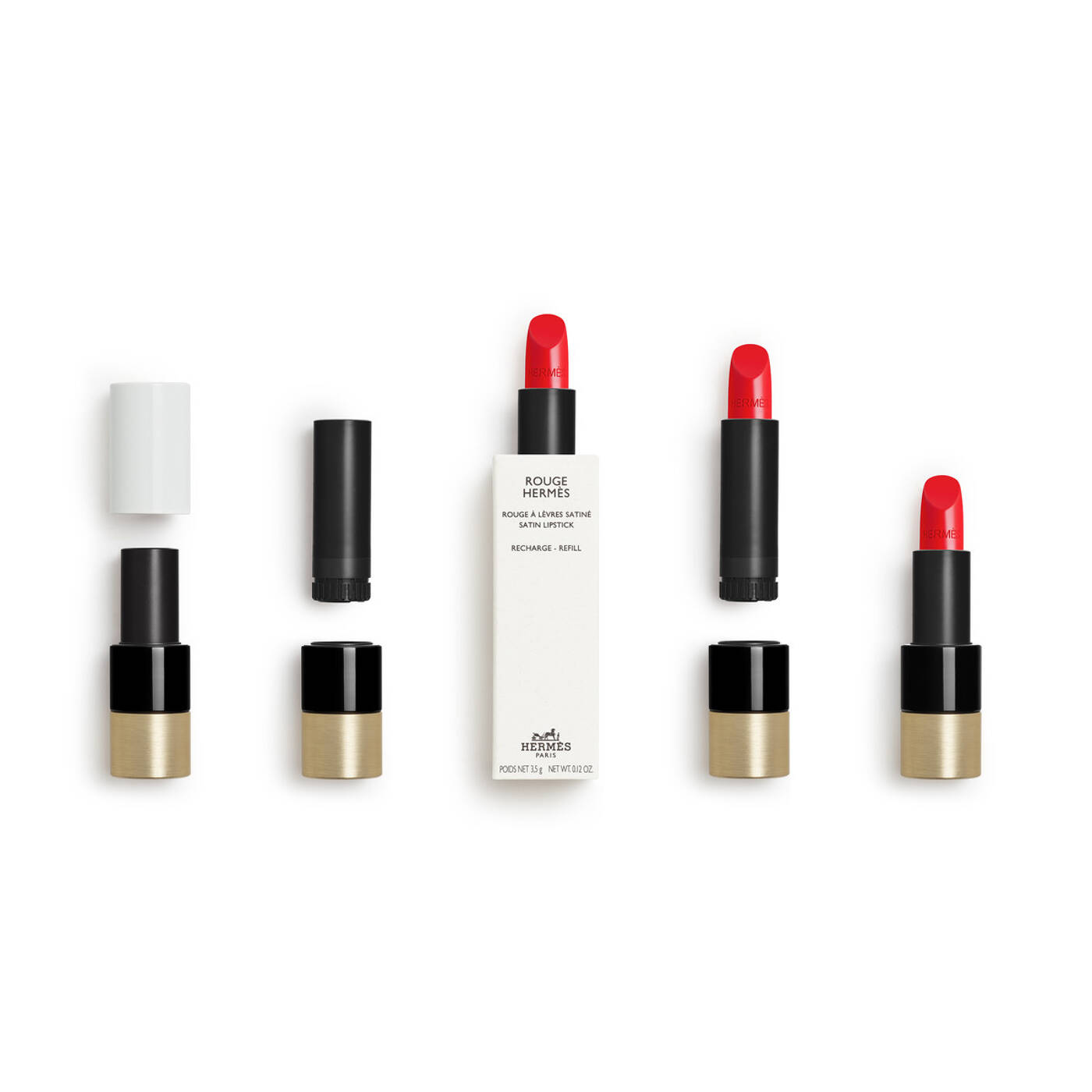 Dieser Refill passt in das Lippenstift-Case von Rouge Hermès (seidig glänzender Lippenstift, matter Lippenstift, Poppy-Lipgloss und Lippenbalsam).