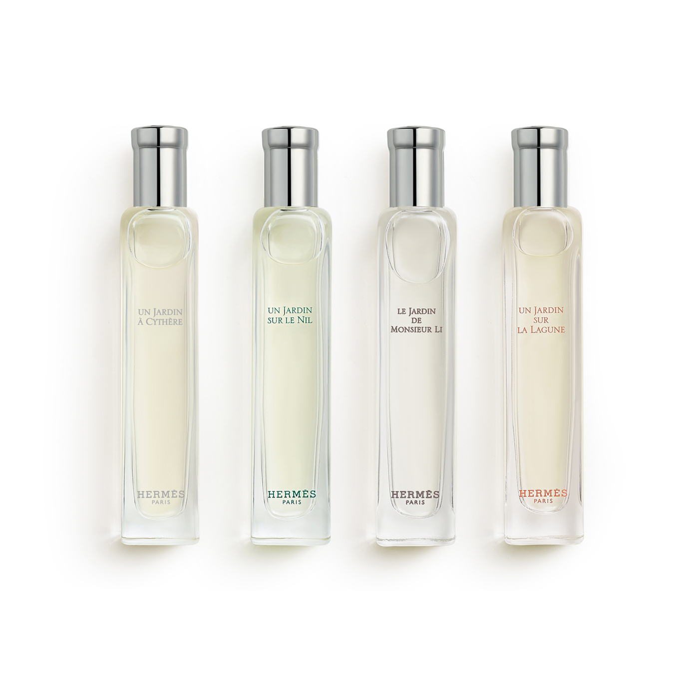 Entdecken Sie die vier emblematischen Parfums-Jardins von Hermès. Die vier 15-ml-Flakons im Taschenformat in der orangefarbenen Schachtel laden als olfaktorische Spaziergänge dazu ein, dem Alltag zu entfliehen.