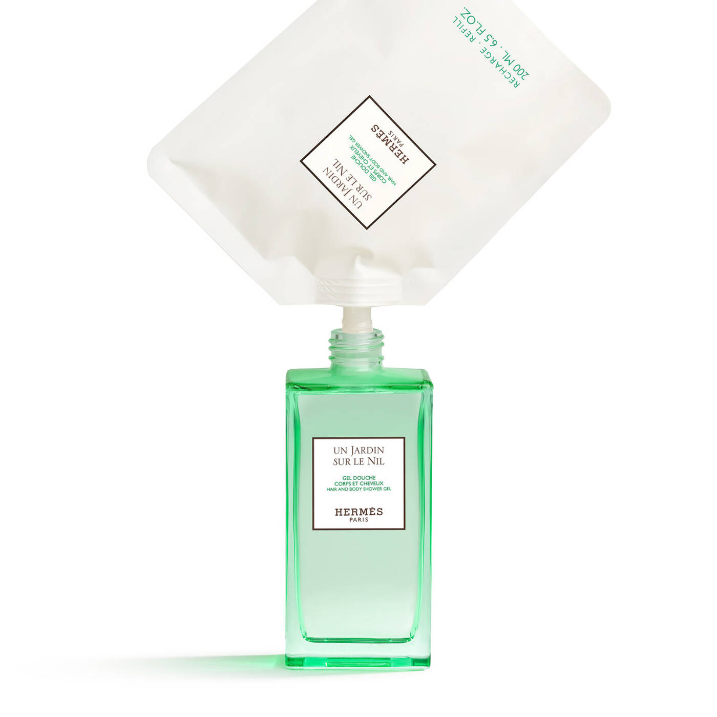 Das Nachfüllset ist vollkommen recycelbar und ermöglicht, den Glasflakon des Duschgels Un Jardin sur le Nil mit derselben Füllmenge wieder aufzufüllen.