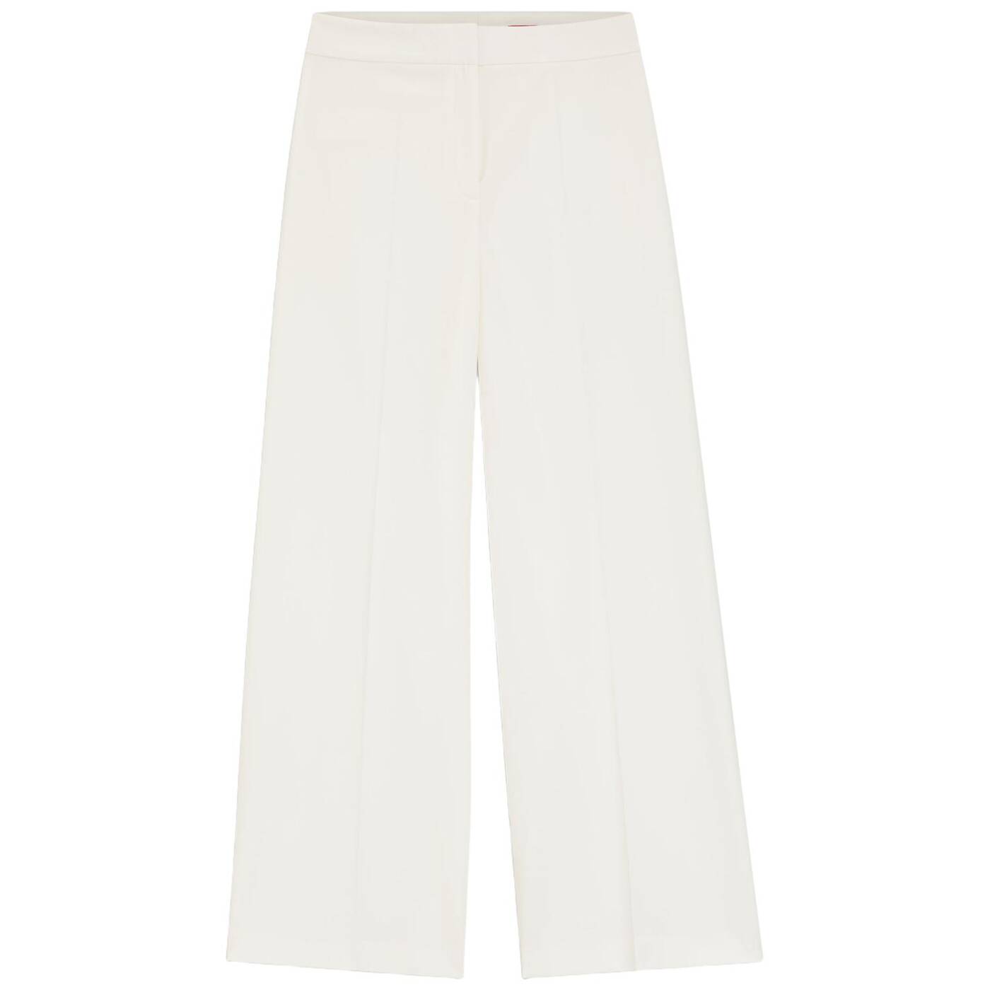 Die hugo hose mit breitem, hohem bund und weitem beinverlauf hat bügelfalten an vorder- und rückseite. elastisches gewebe.