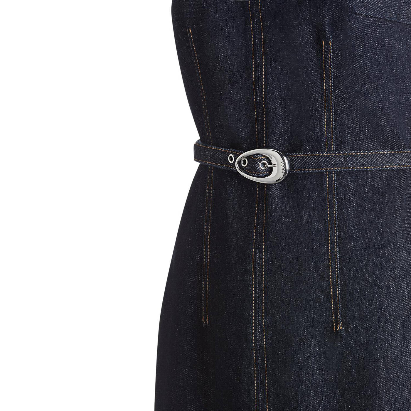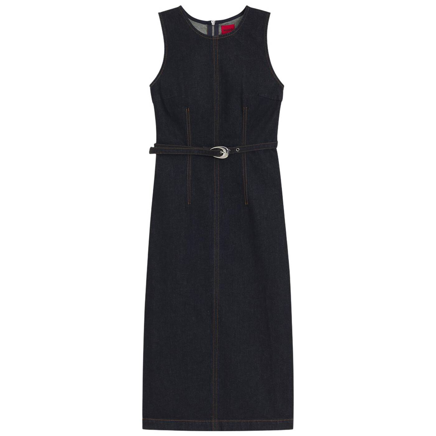 Dieses figurbetonte Kleid von HUGO Womenswear aus bequemem Stretch-Denim mit Used-Look besticht durch einen taillierten Gürtel. Reißverschluss hinten mit langem Denim-Zipper.