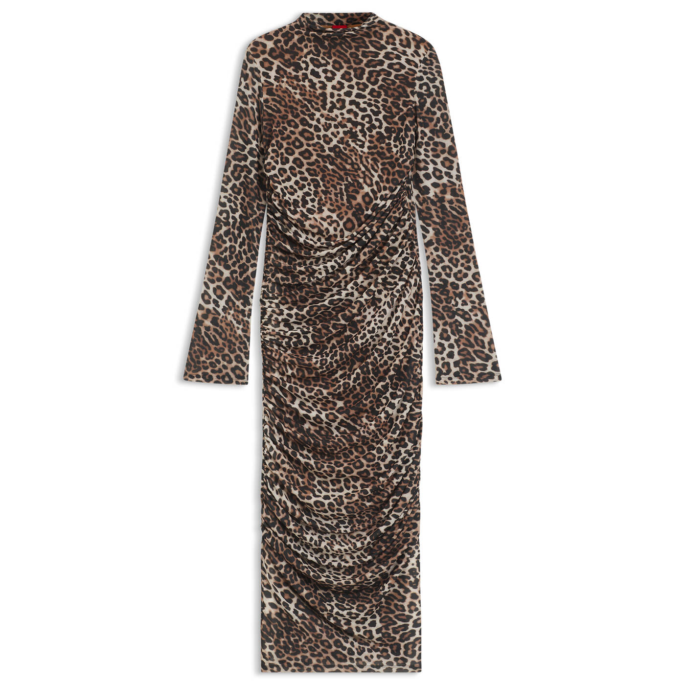 Das HUGO Kleid mit langen Ärmeln und markantem Leopardenmuster ist eine elegante Wahl. Aus elastischem Mesh-Krepp. Schmeichelhafte Raffungen.