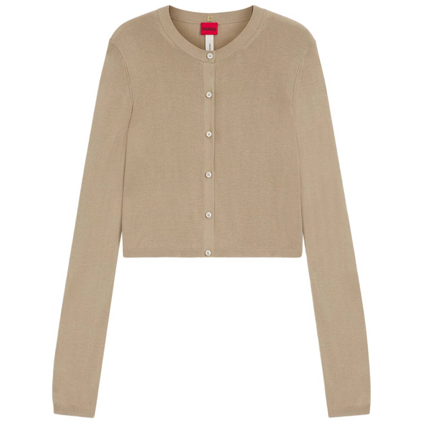 Die hugo strickjacke in verkürzter länge ist ein zeitgemäßer klassiker. ripp-details und goldenes stack-logo-niete mittig am rücken. dieses produkt enthält mindestens 80 % bessere rohstoffe. dieses produkt wird aus zellulosefasern gefertigt, die aus dem natürlichen rohstoff holz aus nachhaltig bewirtschafteten wäldern gewonnen werden. gemeinsam mit externen organisationen setzen wir uns für den respektvollen umgang mit urwäldern und gefährdeten wäldern ein.