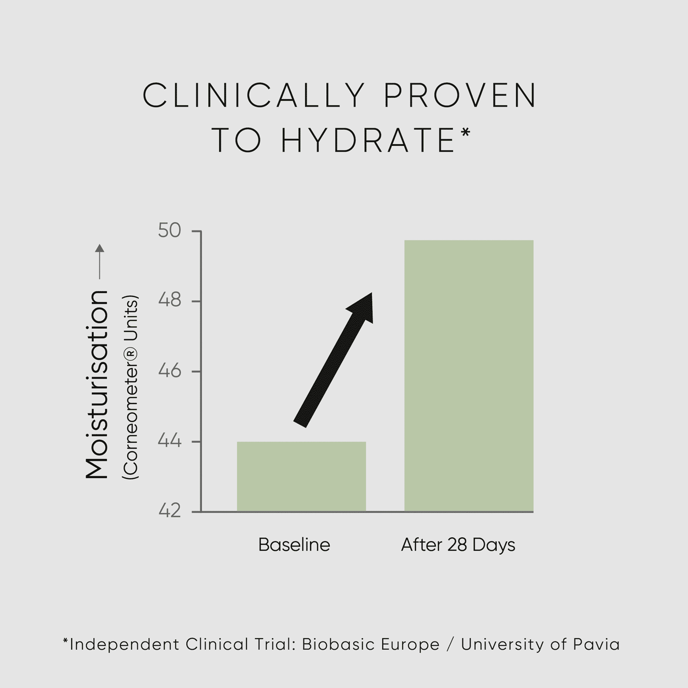 Eine Gesichtscreme, die klinisch erwiesen die Hautfeuchtigkeit erhöht, angetrieben von Pro-Vitamin B5, Hyaluronsäure und Aloe-Blattsaft.