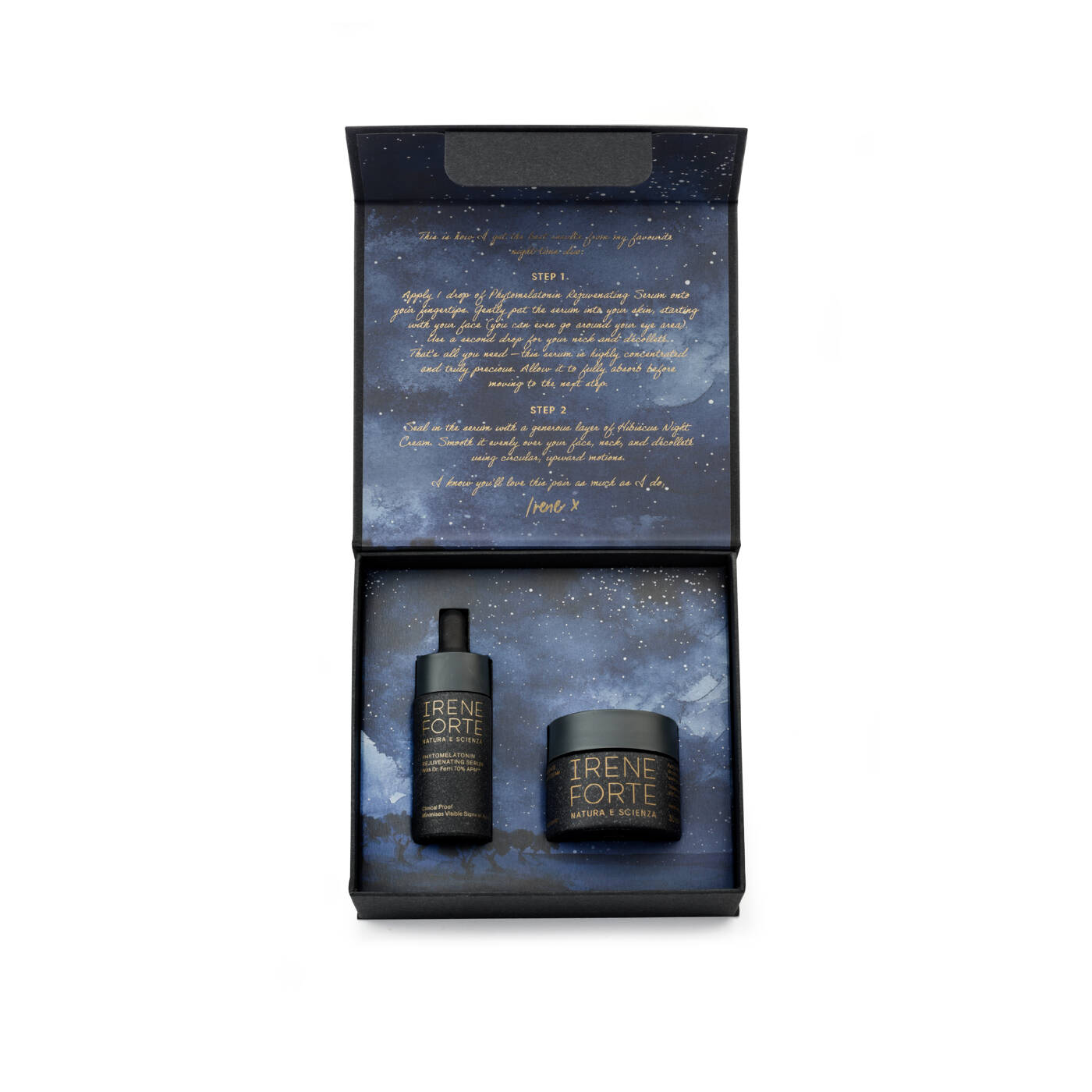 Irene’s Regenerating Night Routine vereint zwei unserer wirksamsten Bestseller. Klinisch bestätigt zur Bekämpfung von sieben sichtbaren Zeichen der Hautalterung, wirken diese Produkte im Einklang mit dem zirkadianen Rhythmus der Haut.