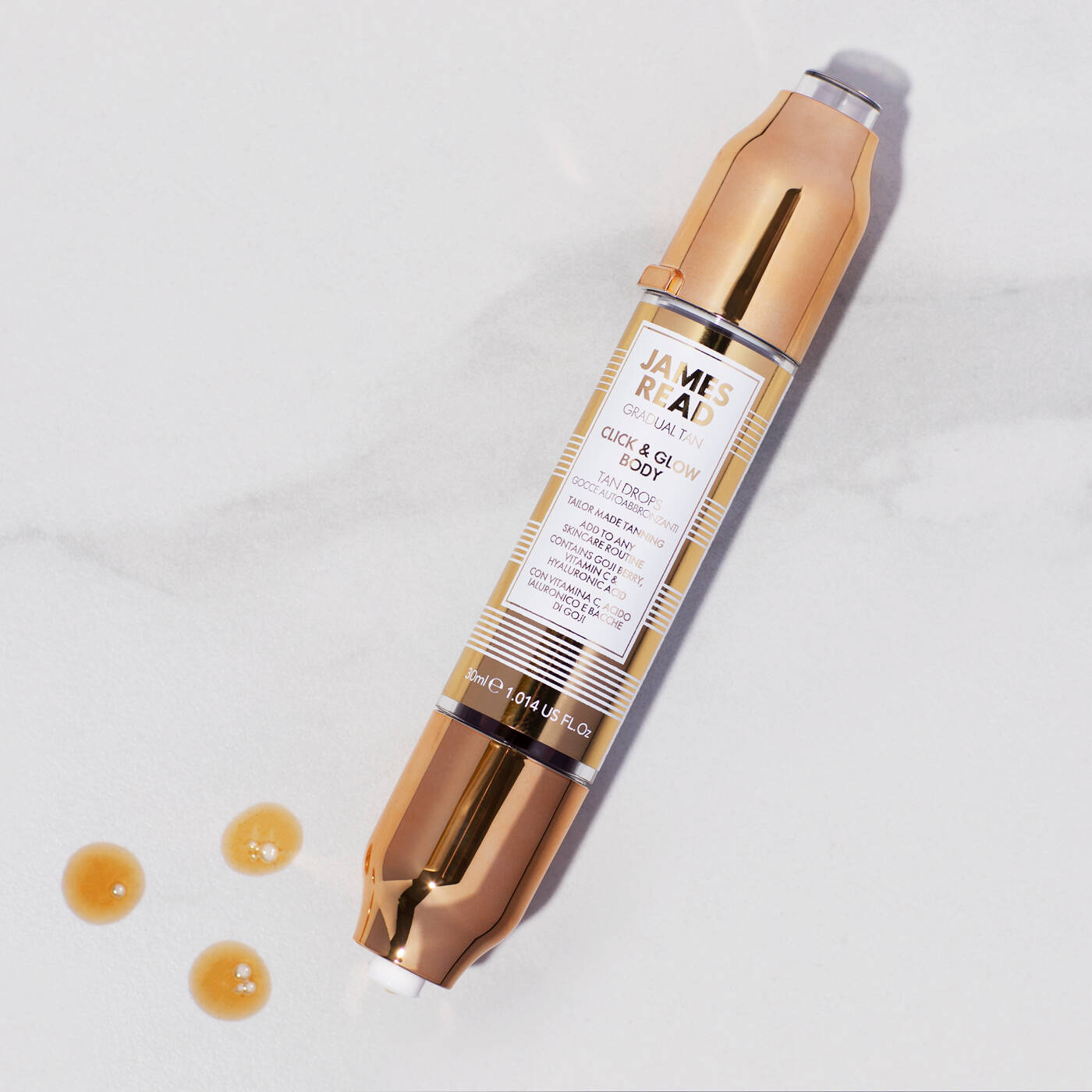 3. Klicken Sie in Ihr bevorzugtes Hautpflegeprodukt, fügen Sie 5-6 Tropfen für einen Glow, 7-8 für eine goldene Bräune oder 9-10 für eine tiefere Bräune hinzu.