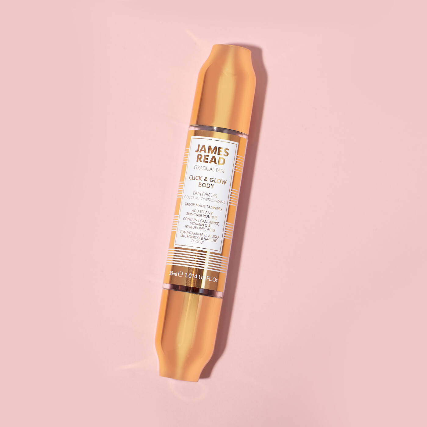 Das preisgekrönte Click & Glow gibt es jetzt auch in 30 ml - perfekt für den Körper! Dieser innovative Bräunungsstift für den Körper wurde entwickelt, um die ultimative Bräune für unterwegs zu erzielen. Mit zugesetztem Vitamin C, Hyaluronsäure und Goji-Beere, um die Feuchtigkeitsversorgung zu unterstützen und eine gesund aussehende Bräune zu fördern. Die dicke Gel-Konsistenz und die satte Karamellfarbe machen das Mischen und Auftragen einfach. Klicken Sie in Ihre Lieblings-Feuchtigkeitspflege für den Körper. Je mehr Sie klicken, desto mehr GLOW.