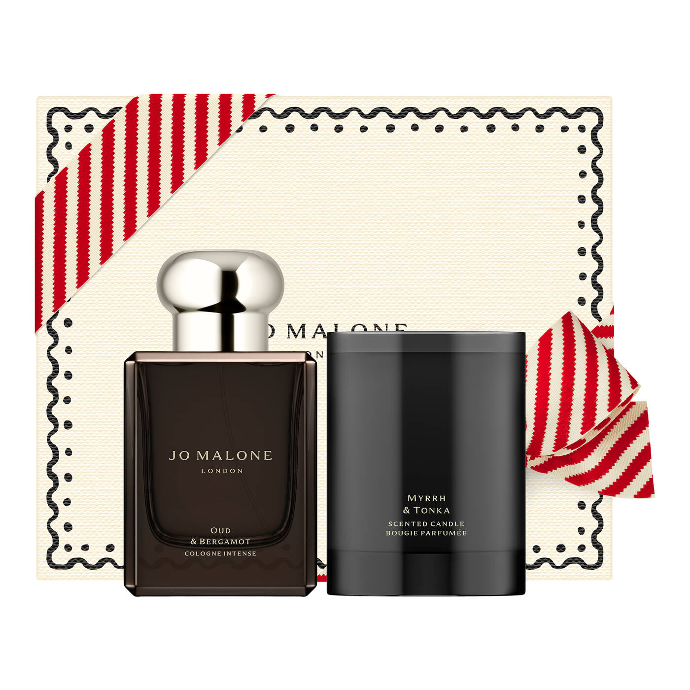 Eine bezaubernde Kombination für sie und ihr Zuhause, verpackt in einer Geschenkbox mit Lebkuchen-Design. Hüllen Sie Ihre Haut in den geheimnisvollen holzigen Duft von Oud & Bergamotte als Cologne Intense und erfüllen Sie kleine Räume mit den warmen, faszinierenden Noten von Myrrh & Tonkabohne in Form einer Reisekerze.