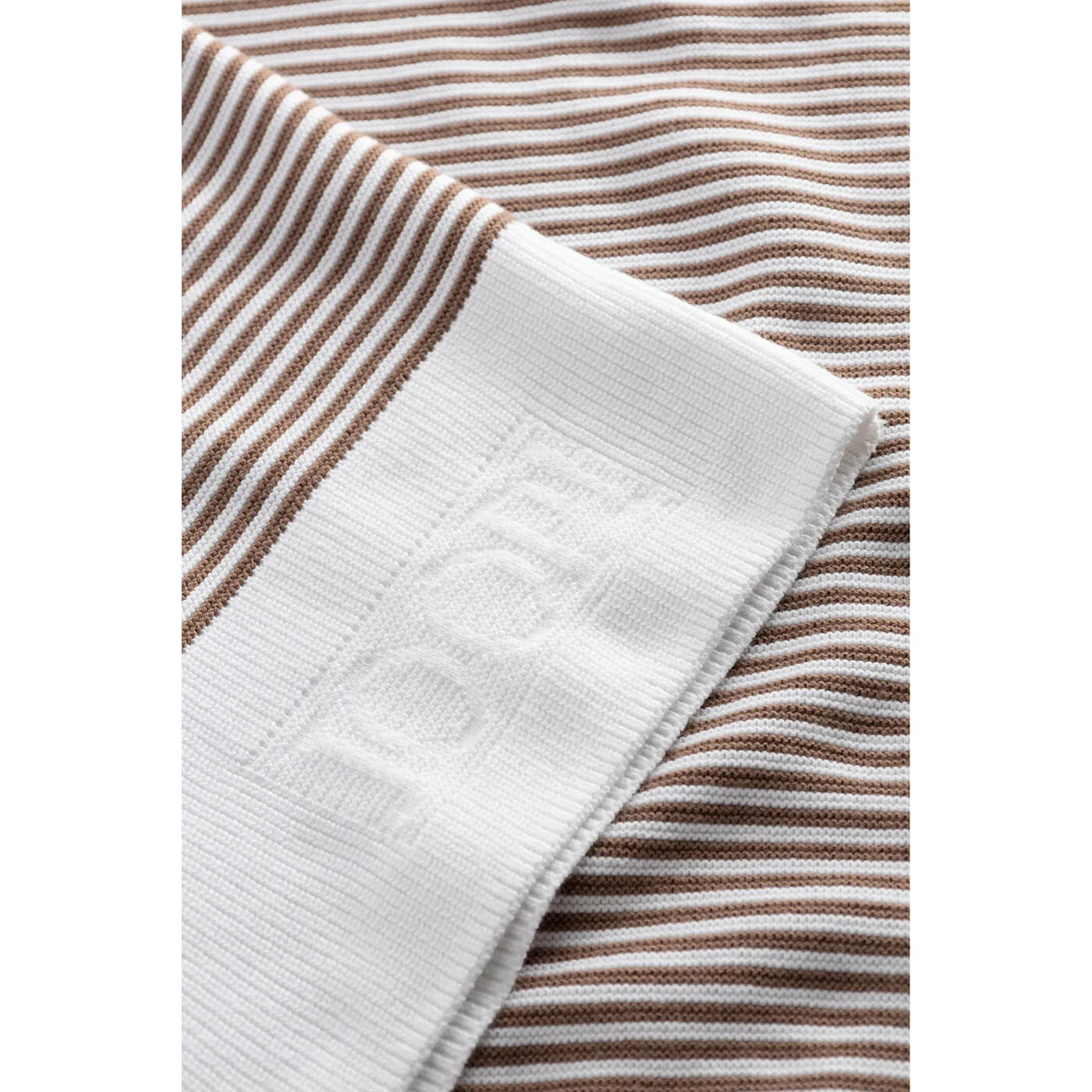 • Rippstricksaum mit Logo-Prägung