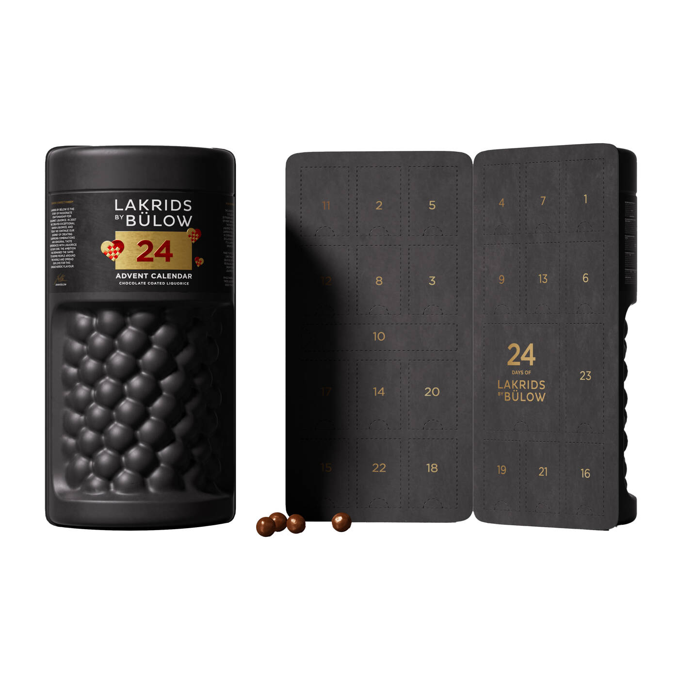 Entdecke Lakritz jeden Tag erneut, während du die Zeit bis Weihnachten herunterzählst. Der LARGE ADVENT KALENDER bietet eine aufregende Auswahl an zeitlosen Klassikern und neuen, exklusiven Geschmacksrichtungen von unwiderstehlichem Lakritz mit Schokoladenüberzug, präsentiert in einem kultigen Design, das an die charakteristischen Lakritzgläser von LAKRIDS BY BÜLOW erinnert. Hinter jedem Türchen verbergen sich vier Stück dänische Gourmet-Lakritze. Einfach perfekt zum teilen.