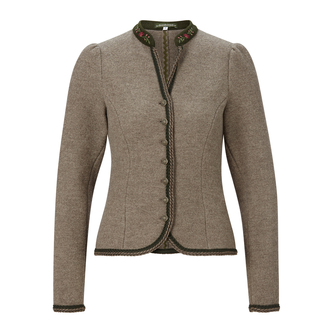 - Kleiner Stehkragen mit feinem floralem Handstick