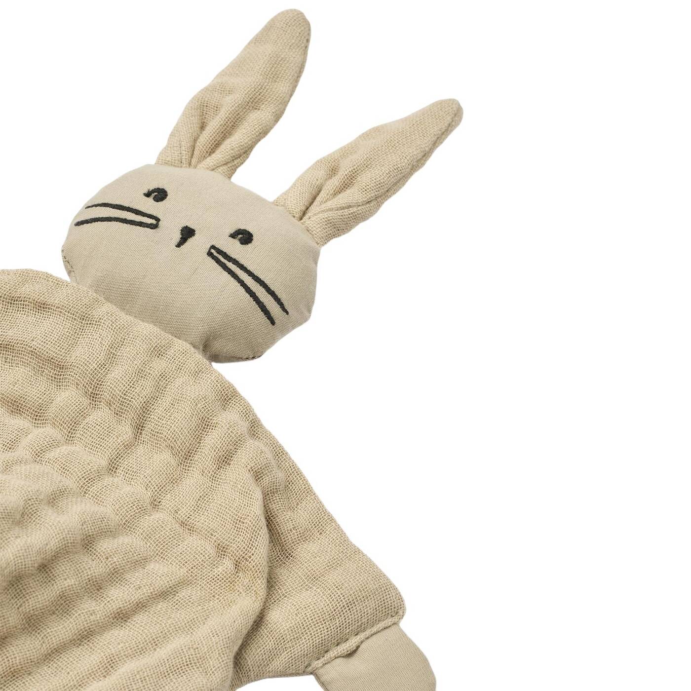 Ein kleiner Schmusetuch-Teddy in Form eines fröhlichen Kaninchens